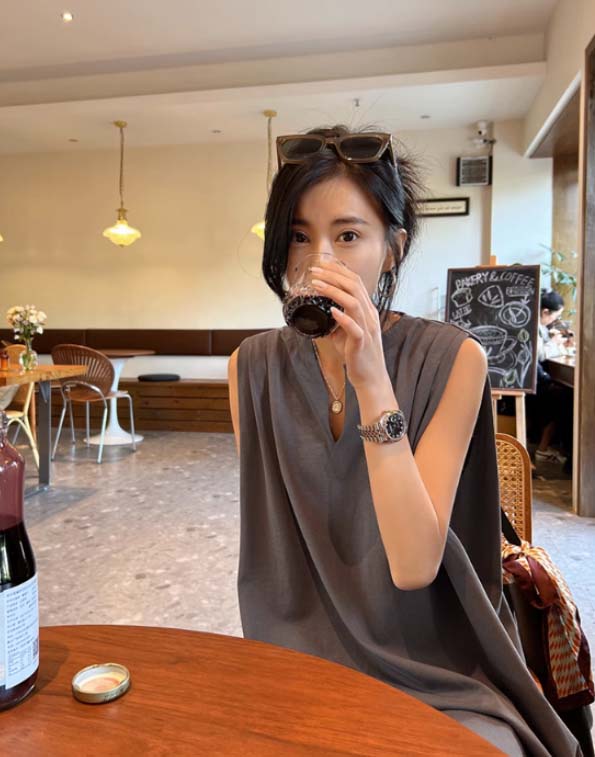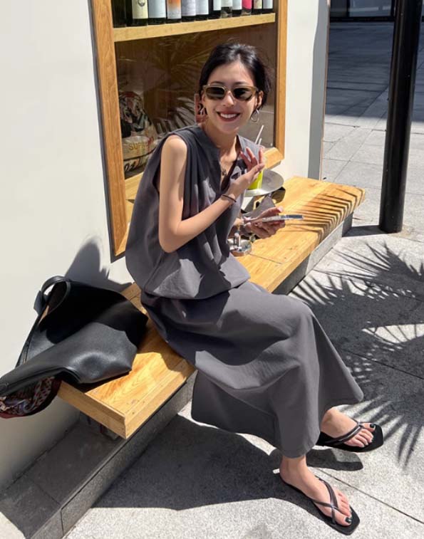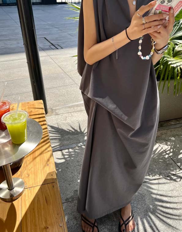 ■コメント ・ドレッシー感漂う上品なノースリーブワンピース。 ・1枚でサッと着られて大人コーデが完成します。 ・サイドウエストタックでデザイン性を高めた1着。 ・デコルテを綺麗に見せてくれる深めのVネック。 ・きれいめで上品なAラインシルエット。 ・綿100%で優しい肌触りの快適な着心地。 ・ブラックとグレーの2色展開。 ■サイズ(単位:約cm) ワンサイズ 着丈136 胸囲126 ■カラー 画像に記載 ■伸縮性 あり ■裏地 なし ■生地の厚さ 普通 ■素材 綿100%