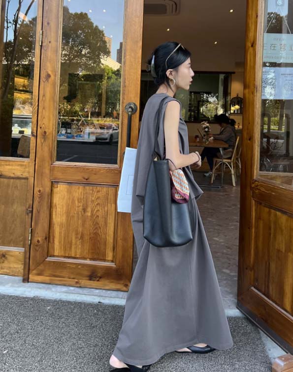 着回し力抜群のロングワンピースは、一枚でスタイリングが完成。