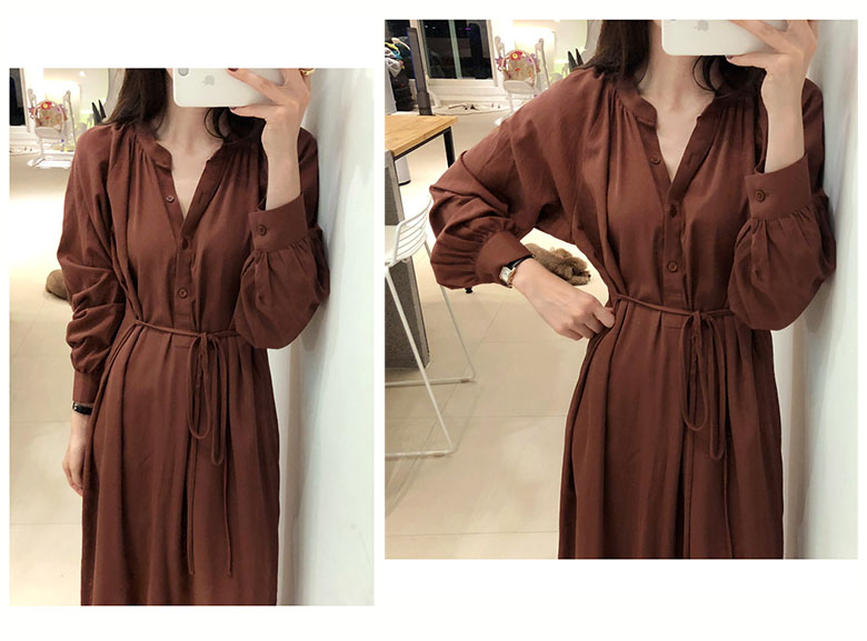 上品なとろみ素材を使用したシャツタイプのロングワンピース。