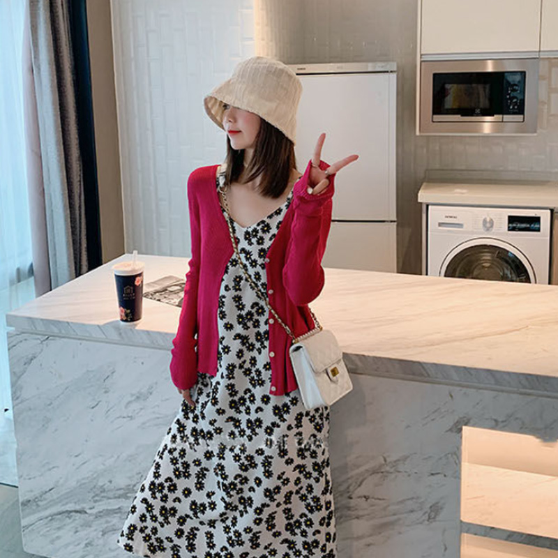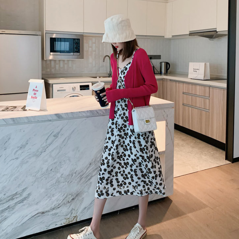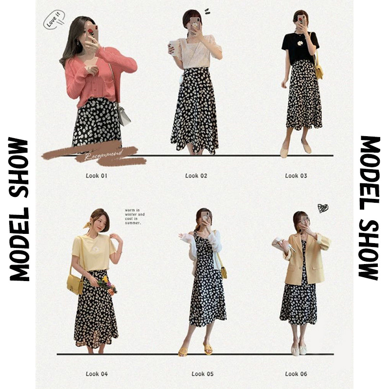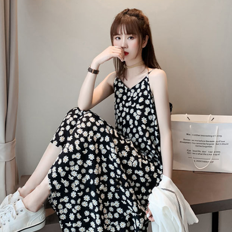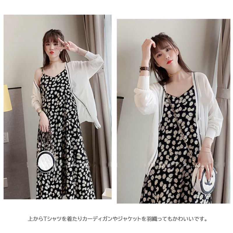 上品な黒地に白い小花柄が散りばめられたキャミタイプのロングワンピースです。