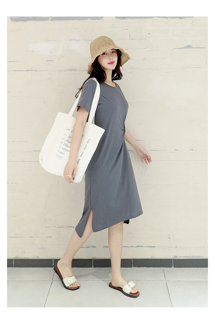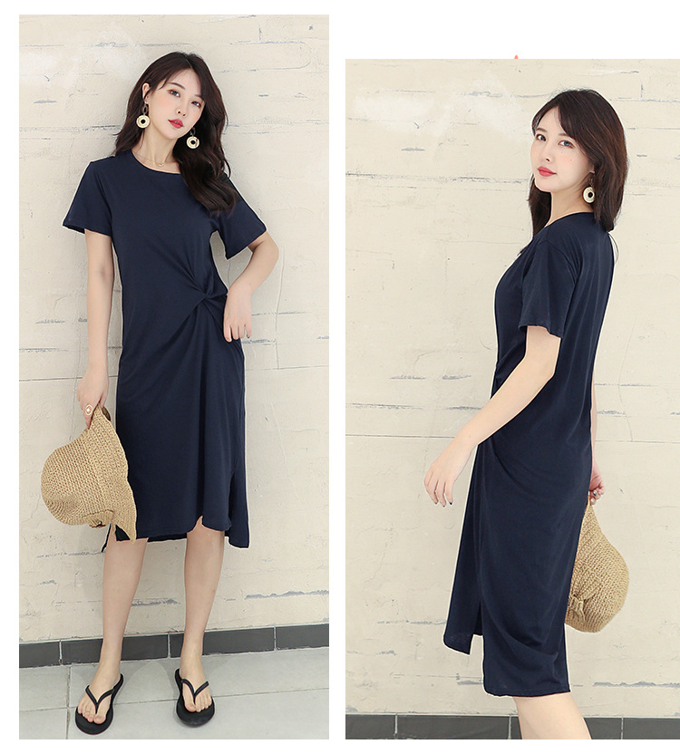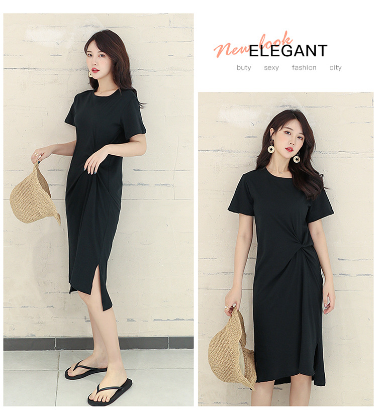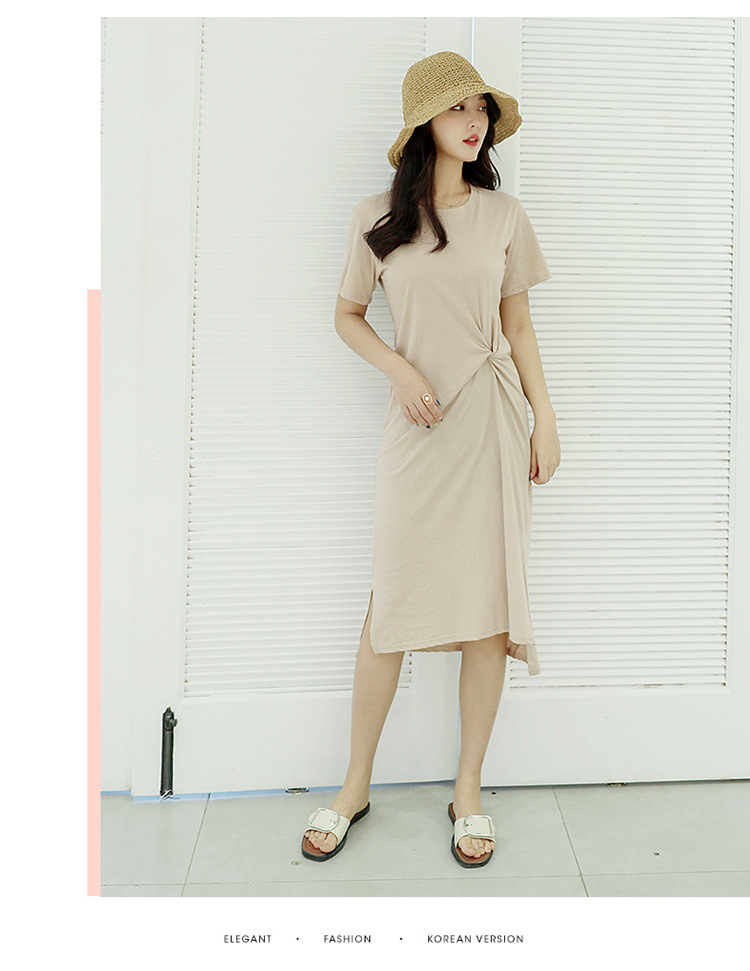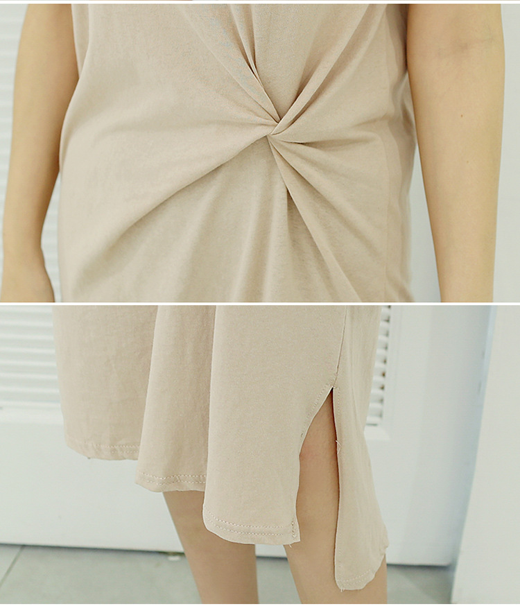 ■コメント ◇ポイント◇ 1.ナチュラルなラウンドネック 2.ツイストデザインで地味すぎない 3.サイドスリットでトレンド感あり、大人ぽい印象 4.露出しすぎない上品な丈感 ◇スタイリング◇ ラフで上品な大人コーデができる一着です。 ベーシックながら、ポイントがあるため、シンプルなスニーカーやサンダルでも、カラフルなパンプスでも合わせやすいです。 カーディガンや羽織りシャツを重ね着しても可愛いです。 ■サイズ(単位:約cm) L 肩幅40 バスト96 袖丈18 着丈105 [XL] 肩幅42 バスト100 袖丈18 着丈105 [2XL] 肩幅44 バスト104 袖丈18 着丈105 ■カラー 画像に記載 ■裏地 なし ■生地の厚さ 普通 ■透け感 色によってあり ■素材 綿65%、ポリエステル35% ■重量 ■包装状況 OPP袋