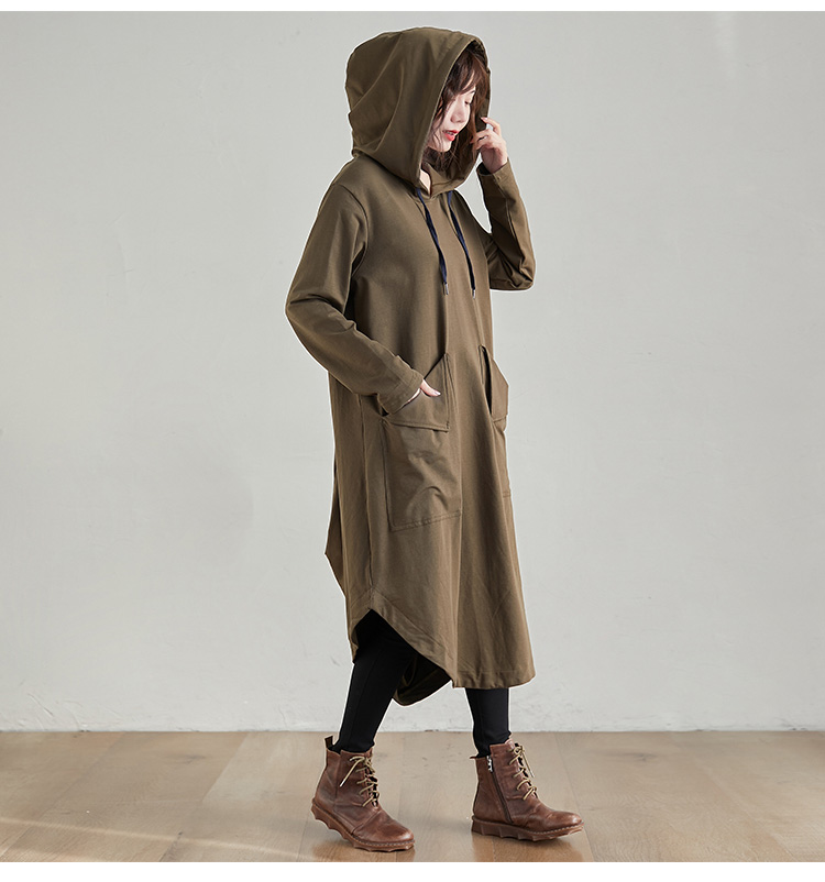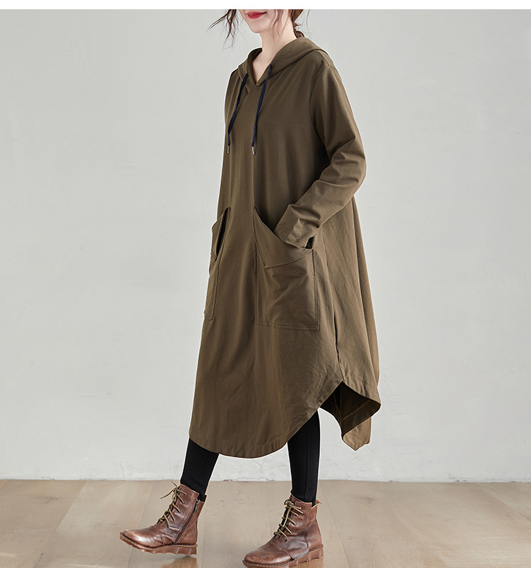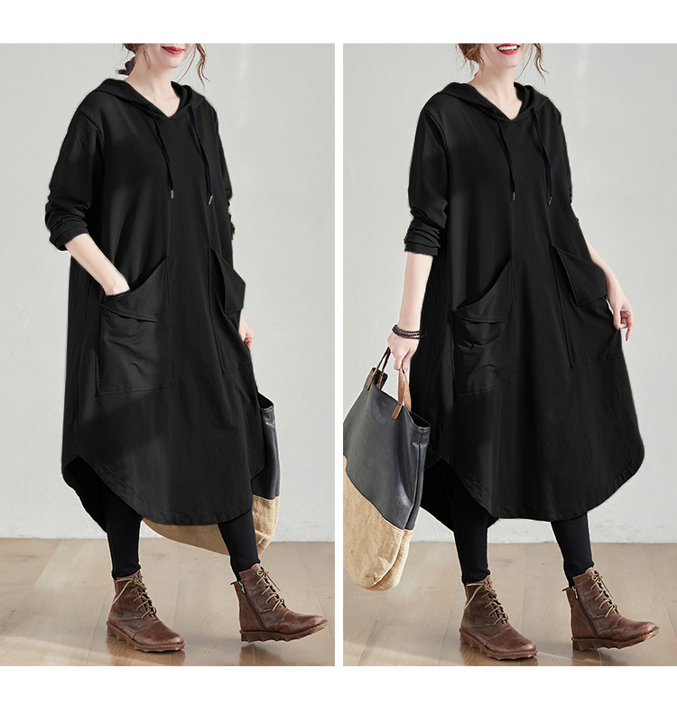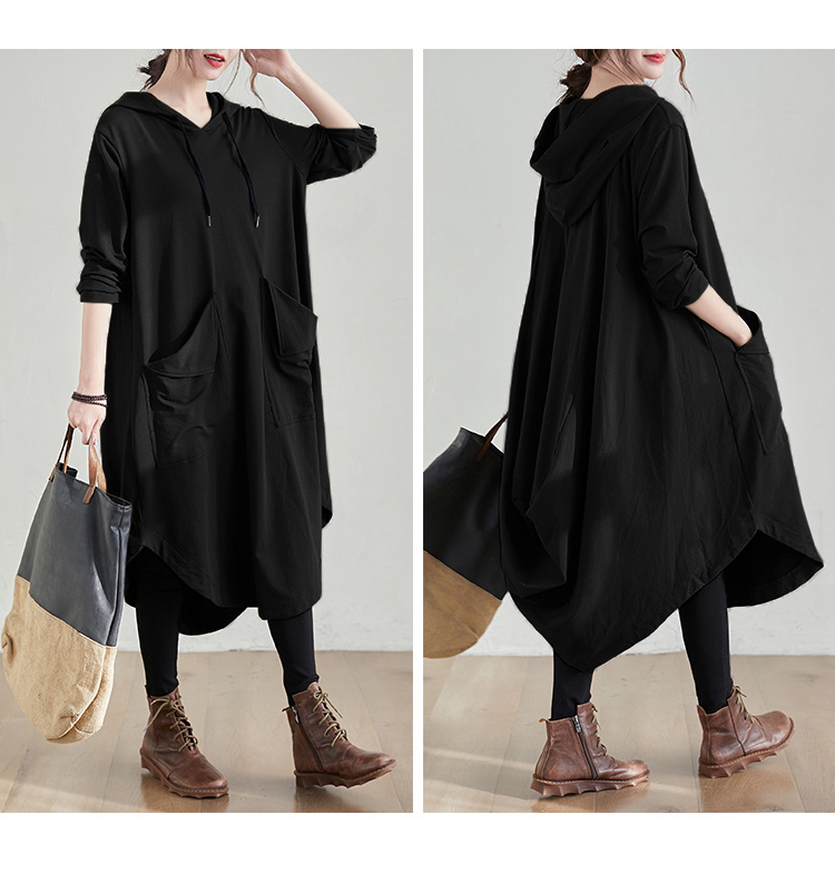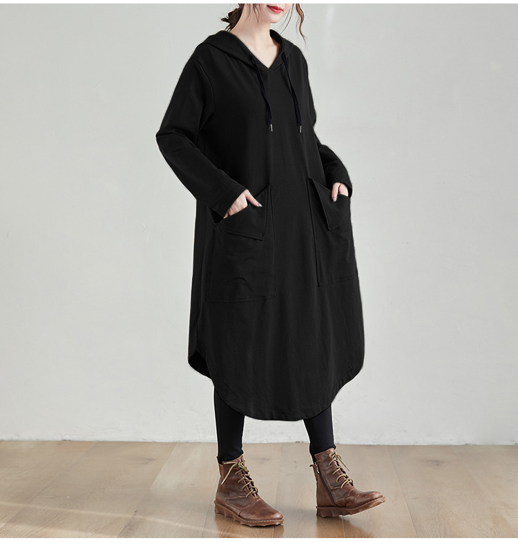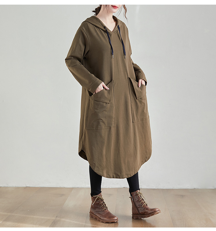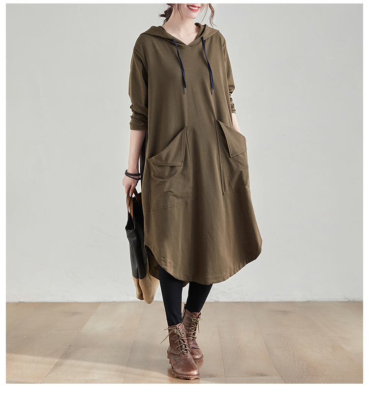 ゆったりとした着心地が魅力のフード付きスウェットワンピースです。