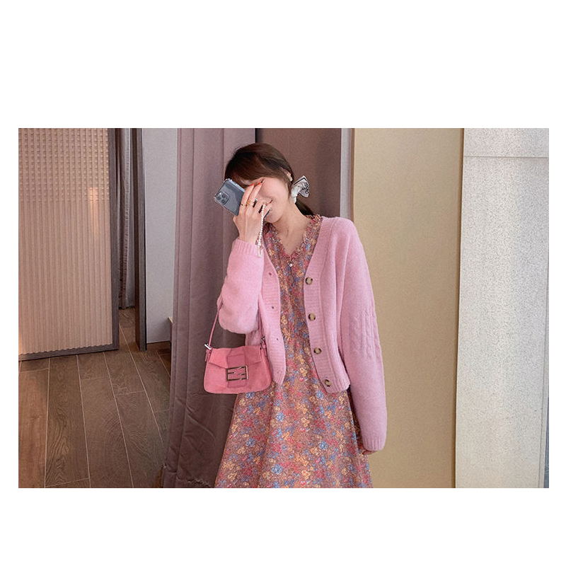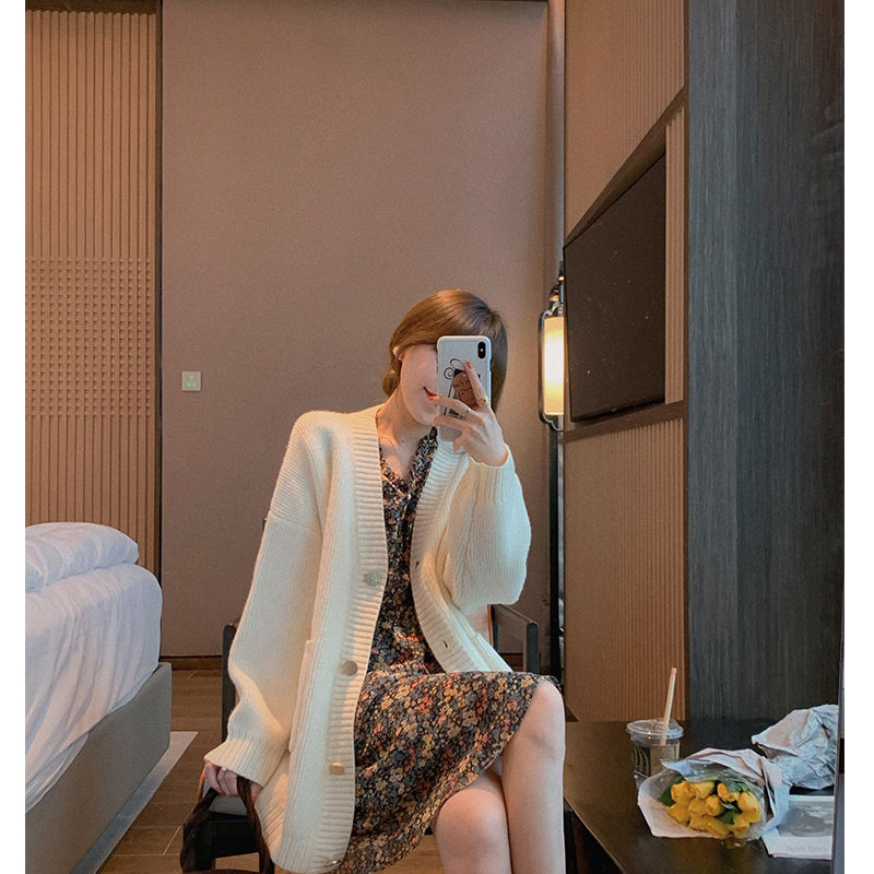ブイネックデザインで女性らしさを演出し、長袖で季節の変わり目にも対応。