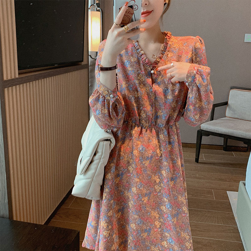 ■コメント ◇ポイント◇ 1.ふんわり柔らかな素材 2.華やかな花柄 3.首元のフリル、ギュッとウエストデザインで女性らしさUP! ◇スタイリング◇ 着方次第でオールシーズ活用できる花柄シフォンワンピです。 華やかな花柄は存在感があり、ゆらゆらとかわいいシルエットに♬ ワンピースとして、チュニックとしてコーデの幅が広がります。 秋冬シーズンはニット、トレンチコートなどと合わせてコーデできます。 ■サイズ(単位:約cm) [S]着丈85cm 肩幅36cm バスト88cm 袖丈61cm [M]着丈86cm 肩幅37cm バスト92cm 袖丈62cm [L]着丈87cm 肩幅38cm バスト96cm 袖丈63cm [XL]着丈88cm 肩幅39cm バスト100cm 袖丈64cm ■カラー 画像に記載 ■裏地 なし ■生地の厚さ やや薄い ■透け感 なし ■素材 ポリエステル100% ■重量 ■包装状況 OPP袋