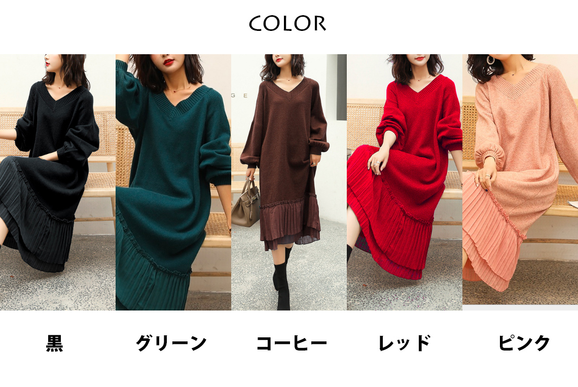 ■コメント ◇ポイント◇ 1.裾のプリーツデザインがポイント 2.程よいゆるいシルエットが大人セクシー ◇スタイリング◇ 今ぽくナチュラルにラフに着こなせるニットワンピース。 裾のプリーツデザインがさりげなくおしゃれ、エレガントな雰囲気があります。 靴やアウターによって、雰囲気がカラット変わります。 日常、旅行、レジャー、ワンマイルウェアとしても、幅広く活用できる便利アイテムです。 ■サイズ(単位:約cm) FREE 着丈105cm バスト108cm 袖丈57cm(OK) ■カラー 画像に記載 ■裏地 なし ■生地の厚さ 普通 ■透け感 なし ■素材 アクリル80%、ポリエステル20% ■重量 ■包装状況 OPP袋