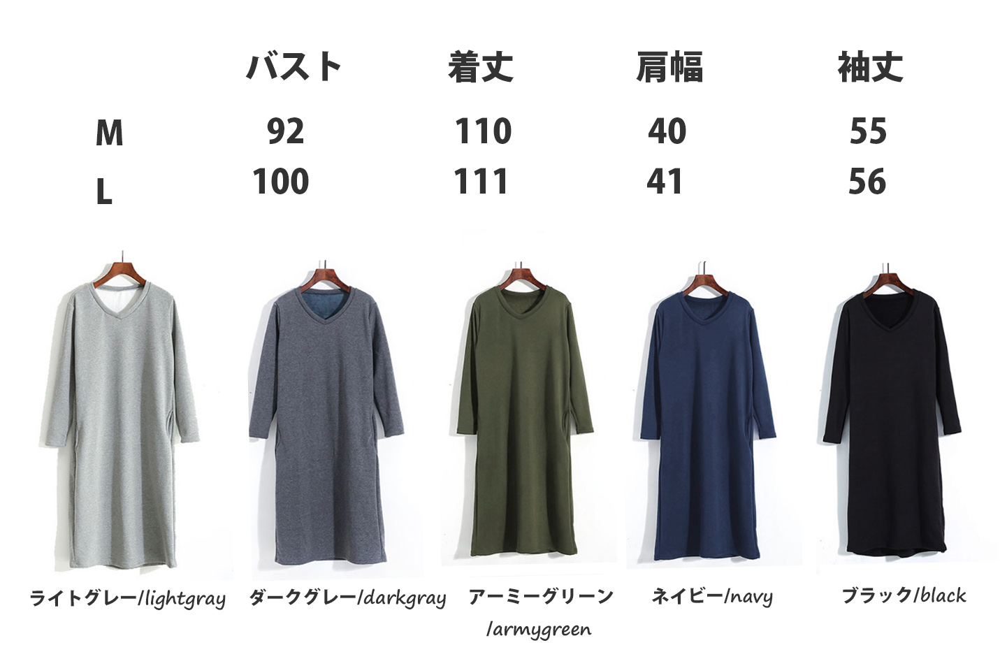 ■コメント ◇ポイント◇ 1.重ね着しやすいベーシックデザイン 2.すとんと程よいゆったりシルエットで痩せ見え 3.(普通)と(裏起毛)の2タイプ 生地の特徴上、(普通)タイプと(裏起毛)タイプのお色は多少異なる恐れがあります。 ◇スタイリング◇ 今ぽくナチュラルにラフに着こなせるベーシックワンピース。 さりげないおしゃれ感 普通と起毛の2タイプです。 日常、通勤通学、ワンマイルウェアとしても、幅広く活用できる便利アイテムです。 ■サイズ(単位:約cm) 画像に記載 ■カラー 画像に記載 ■裏地 なし ■生地の厚さ 普通 ■透け感 なし ■素材 レーヨン(モダール)95%、ポリウレタン5% ■重量 ■包装状況 OPP袋