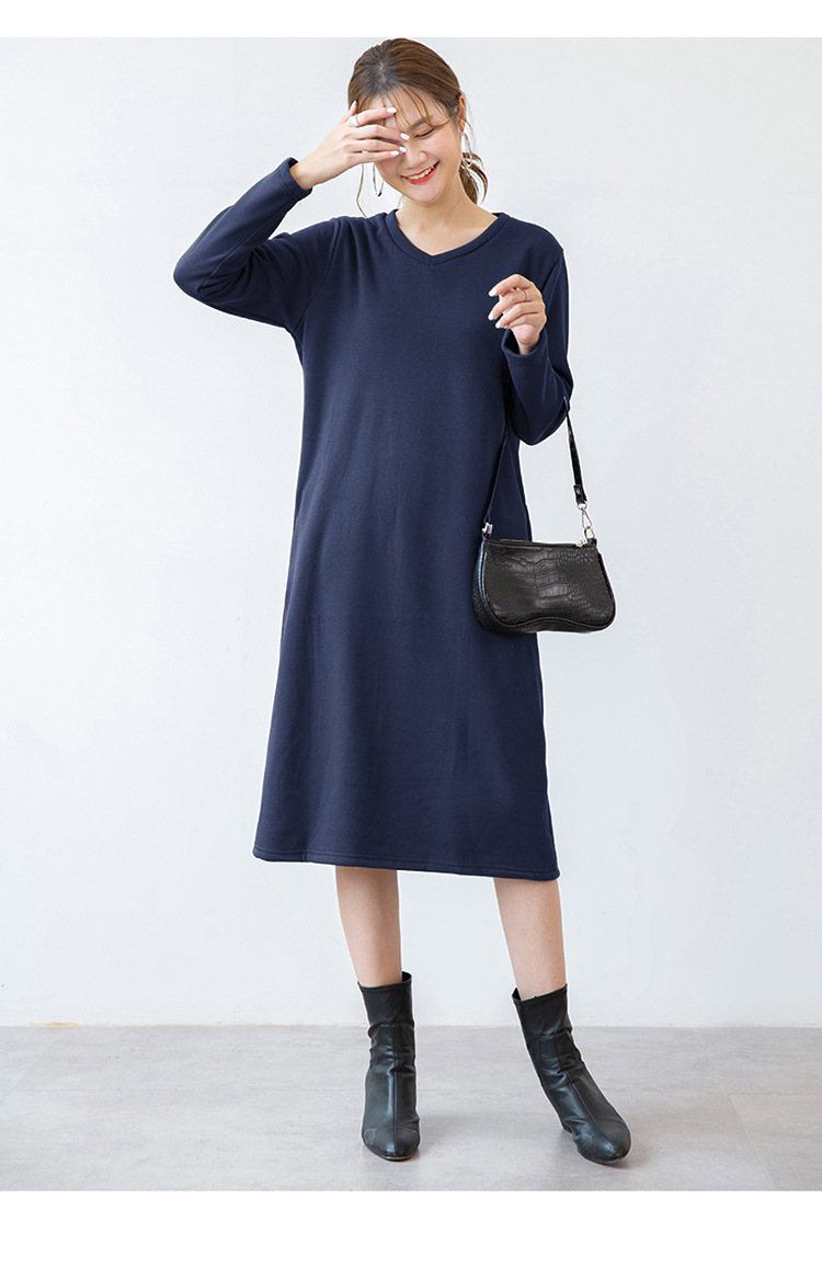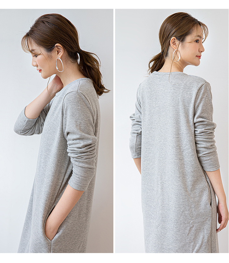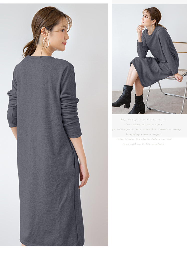 暖かな裏起毛仕様のスウェット素材を使用したロングワンピース。