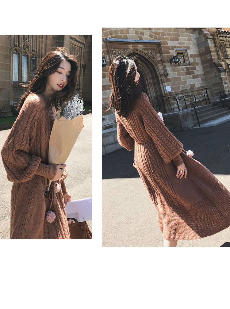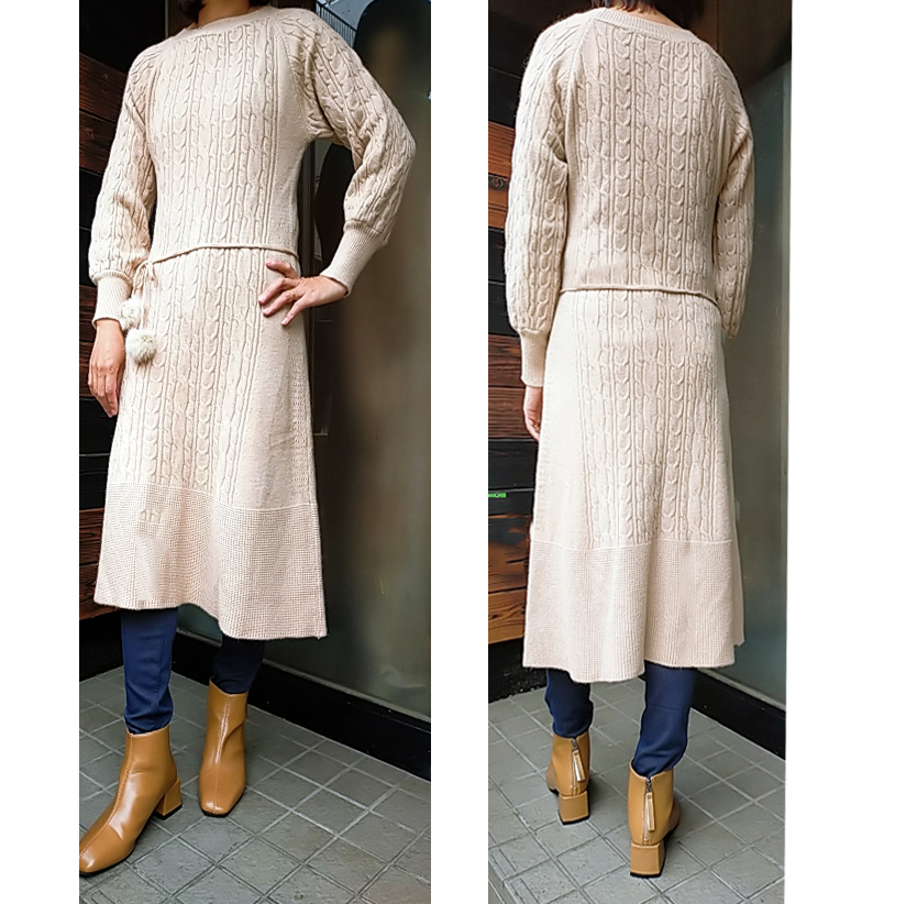 上品なケーブル編みが美しいニットワンピースです。