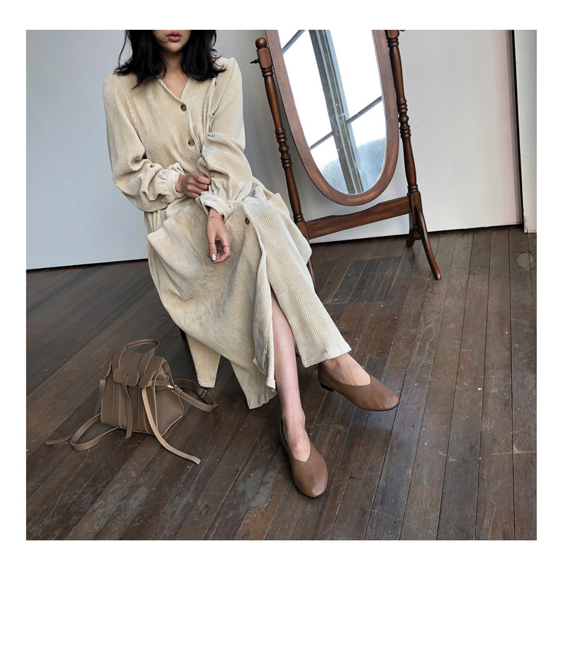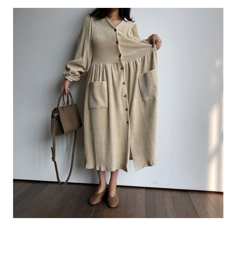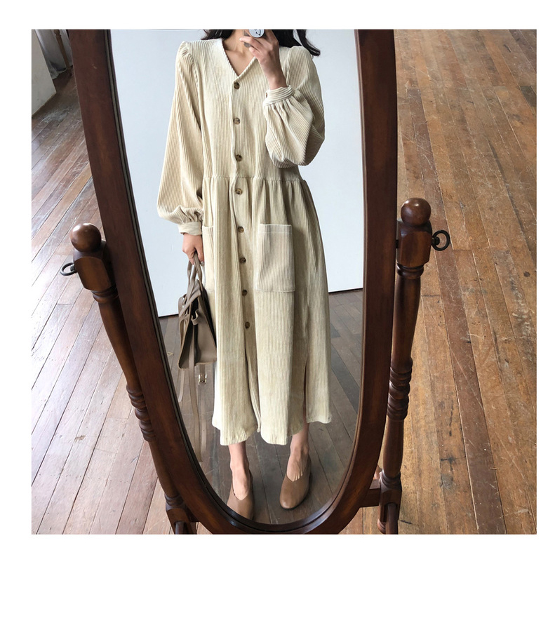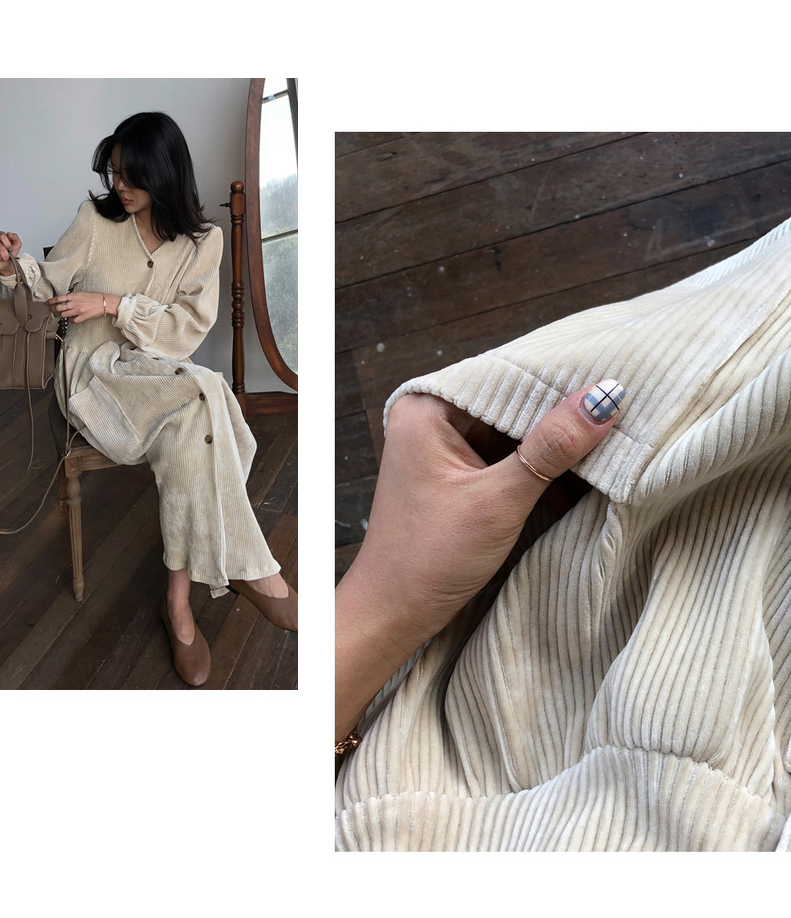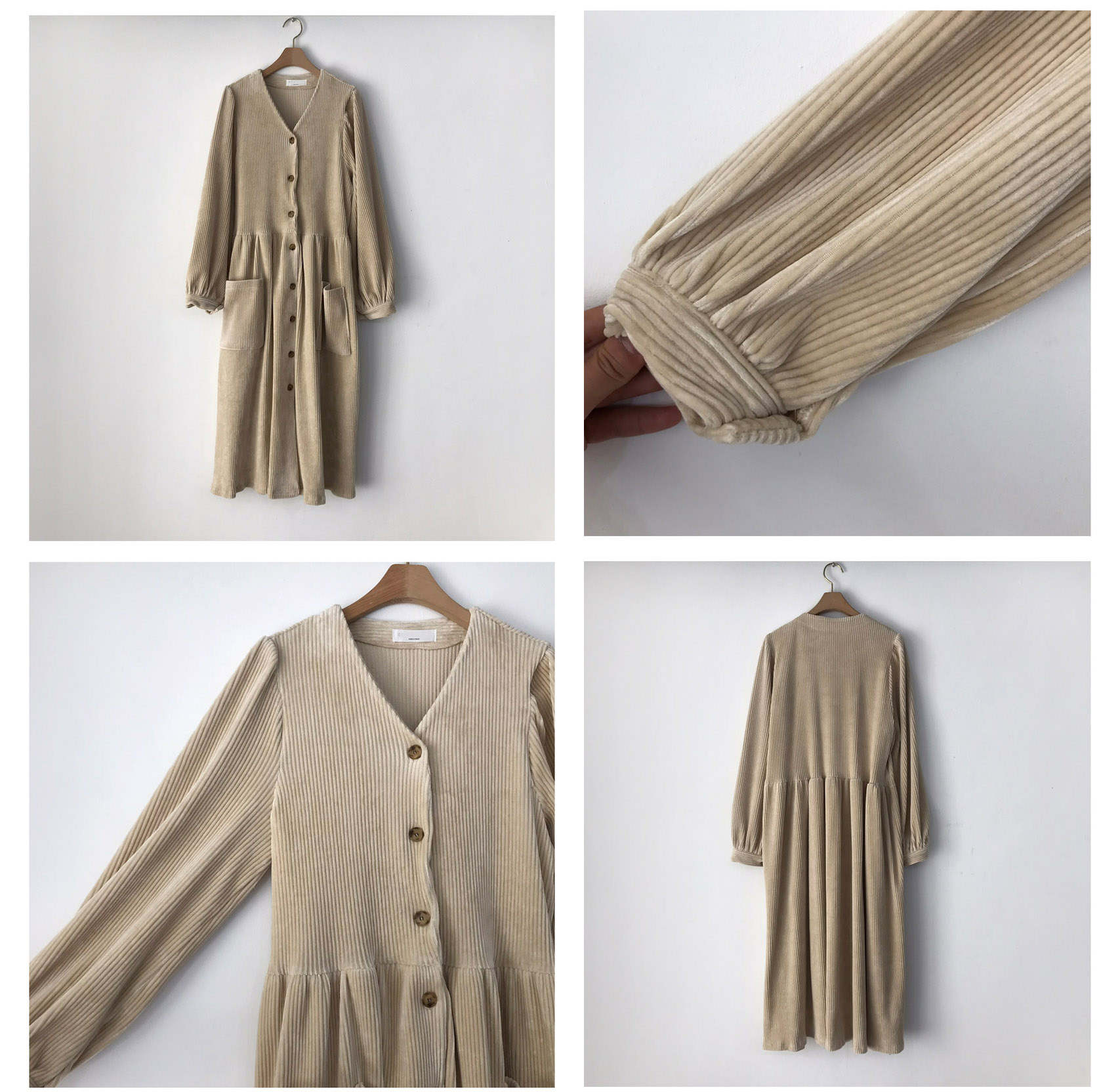上品なコーデュロイ素材のシャツワンピースが登場。