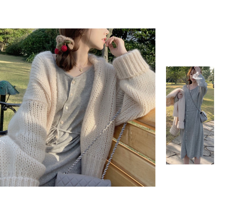 ■コメント ◇ポイント◇ 1.デコルテがきれいに見える大きめのラウンドネック 2.ウエストの紐でアレンジ 3.カジュアルながら上品な印象 ◇スタイリング◇ 今ぽくナチュラルに着こなせるラウンドネックニットワンピース さりげないおしゃれ感 今ぽいトレンド感をMIXしたこだわりの一着 タートルネックと合わせたり、ジーンズやプリーツパンツ、レザー物を合わせると よりスタイリッシュに仕上がります。 ■サイズ(単位:約cm) FREE バスト104cm、ウエスト100cm、袖丈56cm、肩幅40cm、着丈104cm ■カラー 画像に記載 ■裏地 なし ■生地の厚さ 普通 ■透け感 なし ■素材 アクリル100% ■重量 ■包装状況 OPP袋