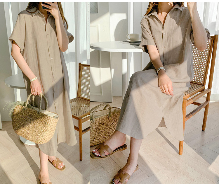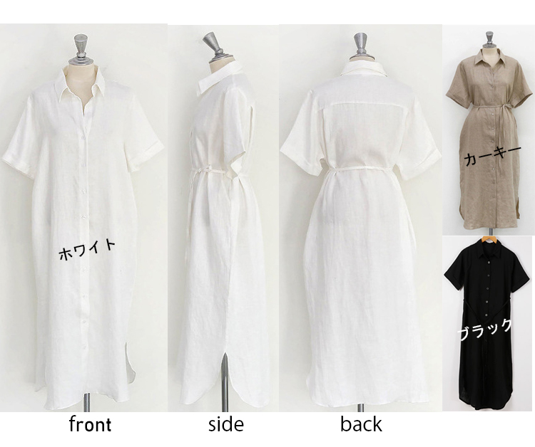 ■コメント 厳選された良いコットンとリネン生地を仕様、肌心地が良いです。 真っすぐにストレートで落ちるスタイル、動くたびにゆらゆらと女性らしいシルエットがきれいです。 程よいVネックラインと長すぎないロング丈が女性らしい雰囲気を出します。 折り袖が二の腕をカバーし、全体的バランスが良く、着やせ効果があります。 同生地細紐ベルトをすることで、さらに女性らしさアップ、よりフォーマルな印象に変わります。 ワンピースとして、ボタンを全部外してさらっと羽織り物としてもスタイルに合わせて2wayで楽しめます。 全体的ナチュラルな雰囲気で、1枚でコーディネートできる商品です。 日常着はもちろん、通勤通学、飲み会、同窓会などいろんなシーンで活用できます。 ■サイズ(単位:約cm) S:着丈114cm、肩幅40cm、袖丈25.5cm、バスト94cm M:着丈115cm、肩幅41cm、袖丈26cm、バスト98cm L:着丈116cm、肩幅42cm、袖丈26.5cm、バスト102cm XL:着丈117cm、肩幅43cm、袖丈27cm、バスト106cm 2XL:着丈118cm、肩幅44cm、袖丈27.5cm、バスト110cm ■カラー ホワイト、カーキー、ブラック ■伸縮性 なし ■裏地 なし ■生地の厚さ やや薄い ■透け感 ややあり ■素材 コットン90%、リネン10%
