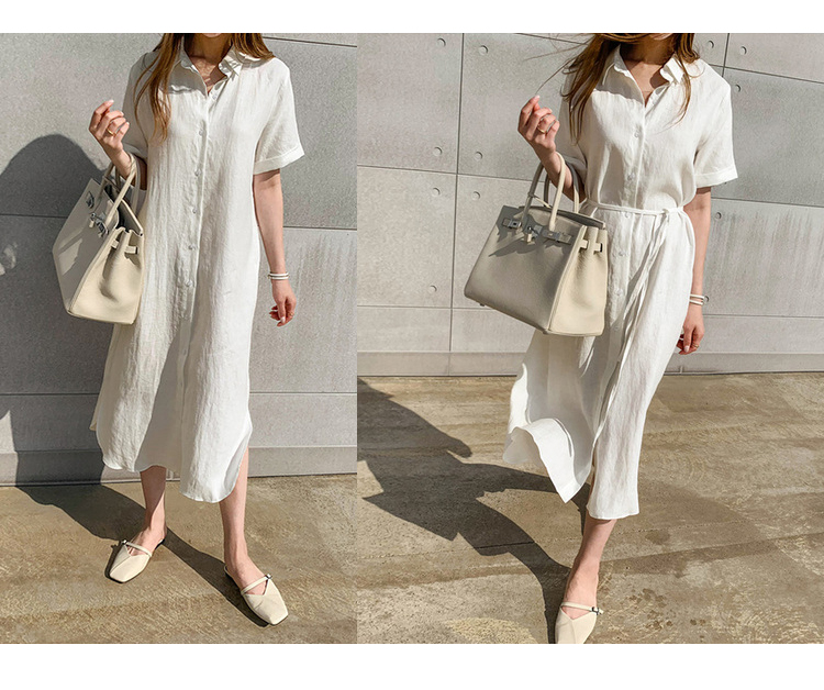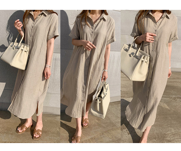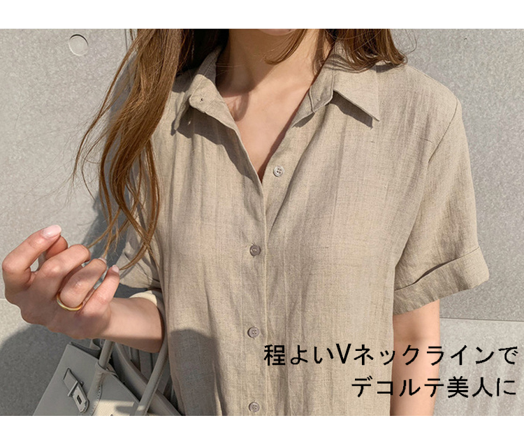 大人の女性にぴったりな綿麻素材のシャツワンピース。