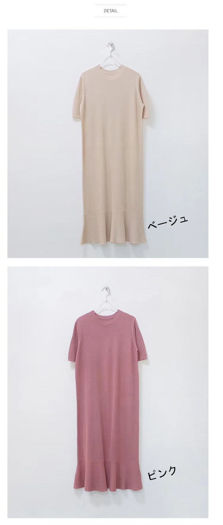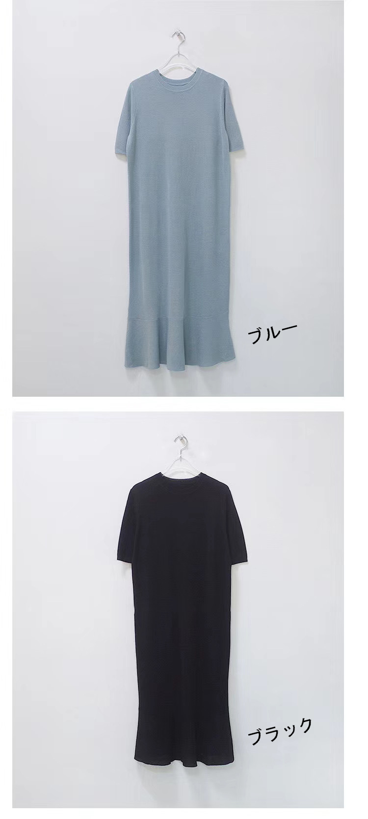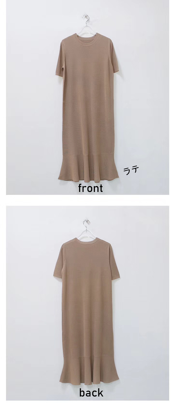 ■コメント 厳選された良いニット生地を使用、肌心地の良いロング丈ニットワンピースです。 程よいフィット感と真っすぐにすとんと落ちるデザインで、 隠しシルエットなのでやせて見えます。 涼しげなクルーネックと半袖、 程よい丈感が全体的なバランスが良く、着やせ効果があります。 使いまわしのきくシンプルカラーをご用意、 おすすめのマストアイテムです。 ワンピース一枚でもコーディネートできる優れもの☆ 毎日何着るか迷わず、これ一枚でコーディネート完成です。 ナチュラルでベーシックな雰囲気ですが、 フレアデザインで女性らしさをアップしました。 日常着はもちろん、通勤通学、飲み会、同窓会などいろんなシーンで活用できます。 ■サイズ(単位:約cm) freesize(詳細準備中) ■カラー ベージュ、ピンク、ブルー、ブラック、ラテ ■伸縮性 あり ■裏地 なし ■生地の厚さ 普通 ■透け感 なし ■素材 綿100%