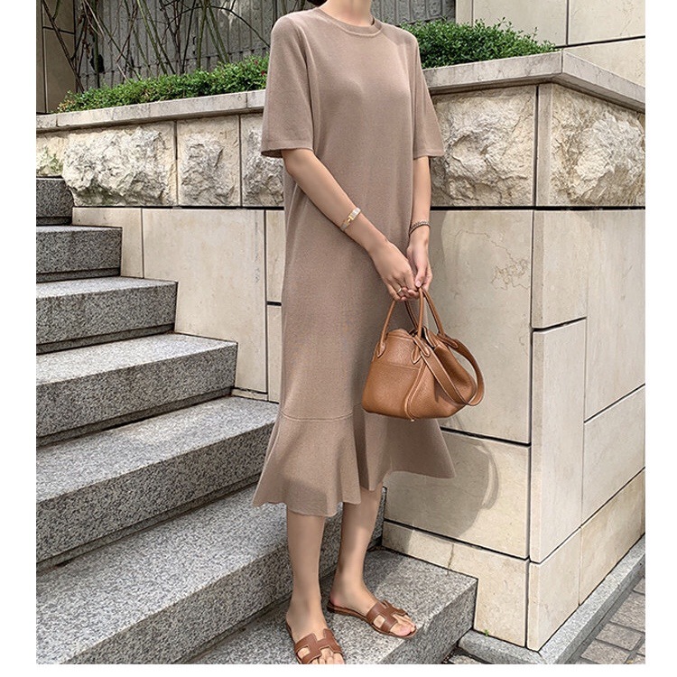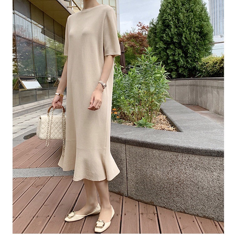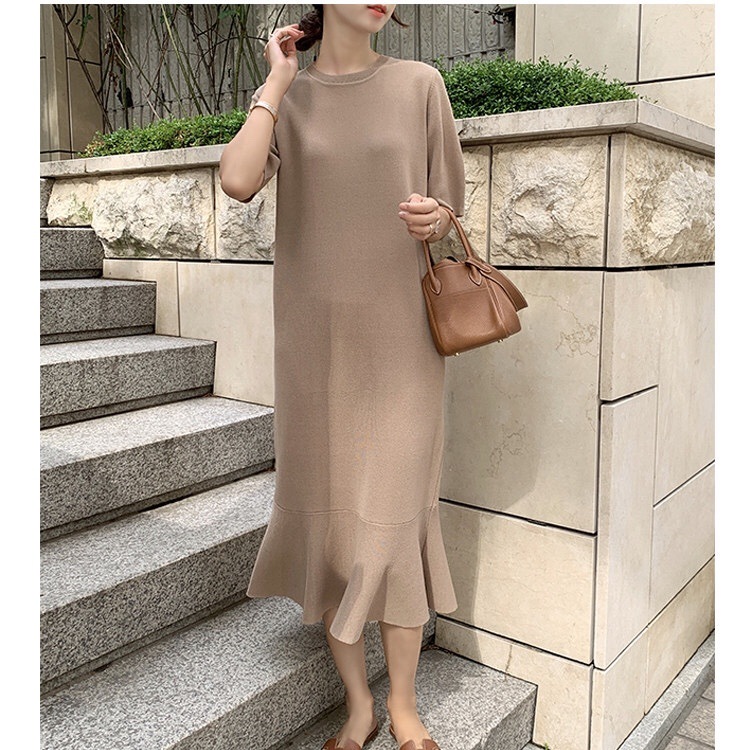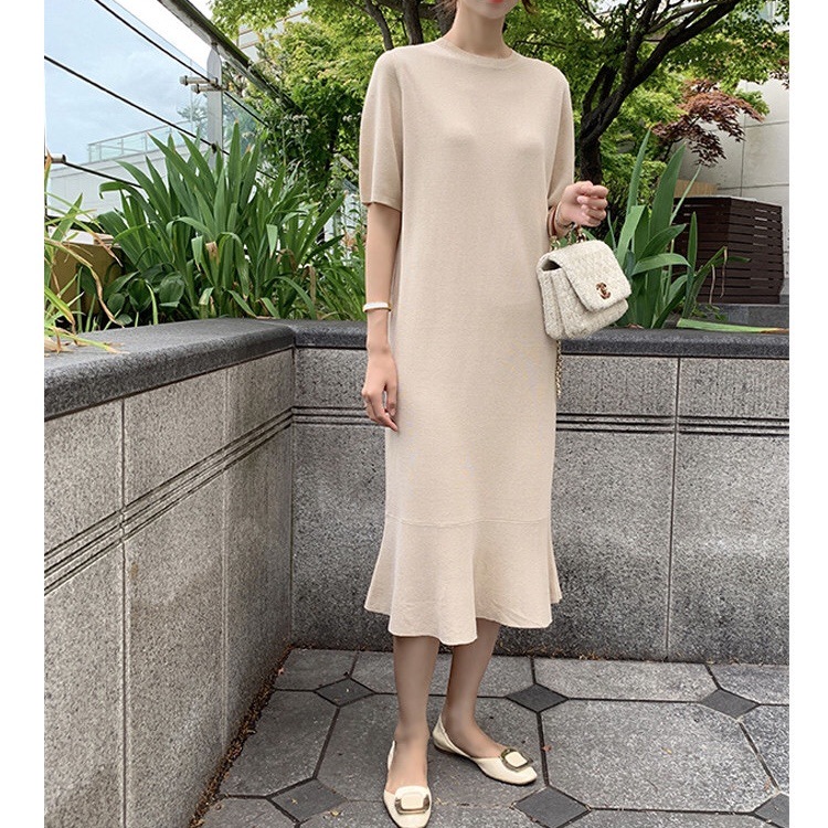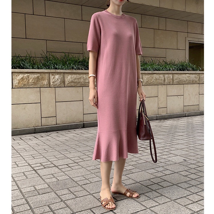 ■コメント 厳選された良いニット生地を使用、肌心地の良いロング丈ニットワンピースです。 程よいフィット感と真っすぐにすとんと落ちるデザインで、 隠しシルエットなのでやせて見えます。 涼しげなクルーネックと半袖、 程よい丈感が全体的なバランスが良く、着やせ効果があります。 使いまわしのきくシンプルカラーをご用意、 おすすめのマストアイテムです。 ワンピース一枚でもコーディネートできる優れもの☆ 毎日何着るか迷わず、これ一枚でコーディネート完成です。 ナチュラルでベーシックな雰囲気ですが、 フレアデザインで女性らしさをアップしました。 日常着はもちろん、通勤通学、飲み会、同窓会などいろんなシーンで活用できます。 ■サイズ(単位:約cm) freesize(詳細準備中) ■カラー ベージュ、ピンク、ブルー、ブラック、ラテ ■伸縮性 あり ■裏地 なし ■生地の厚さ 普通 ■透け感 なし ■素材 綿100%