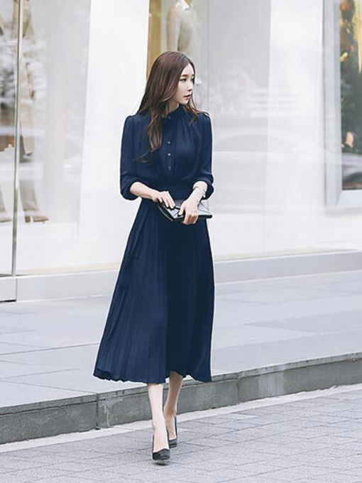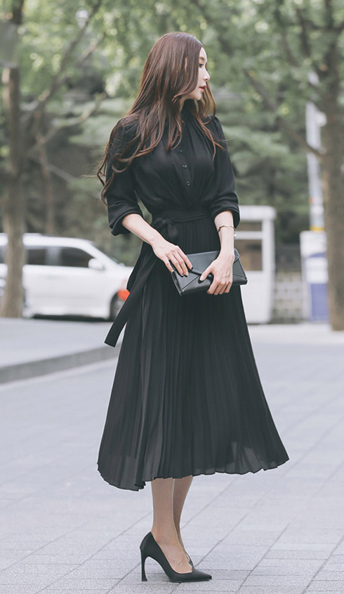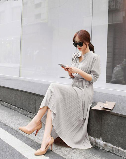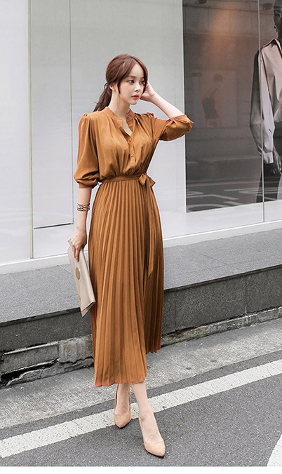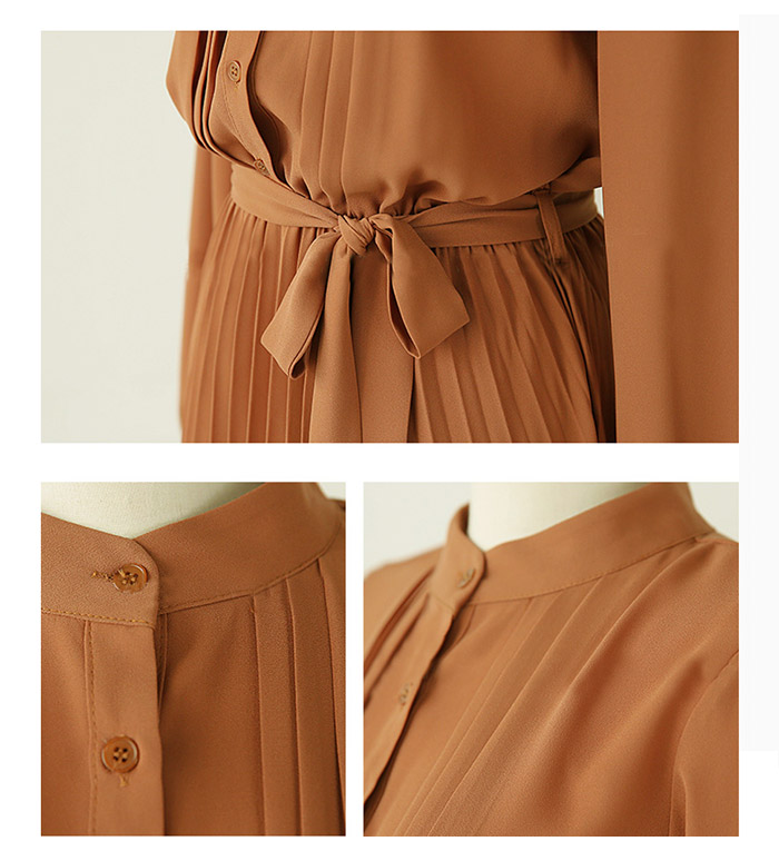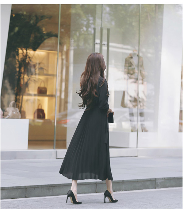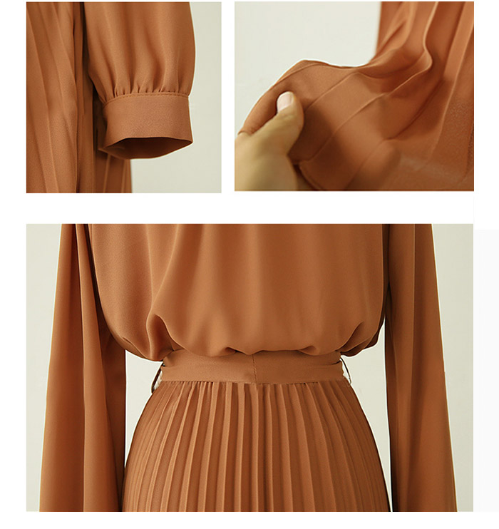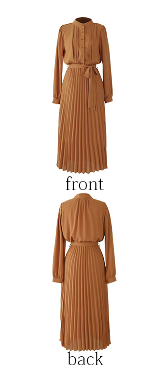 上品なプリーツデザインが美しいロングワンピース。
