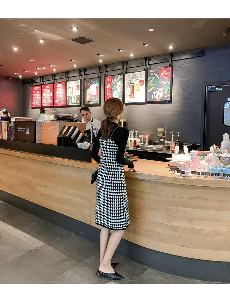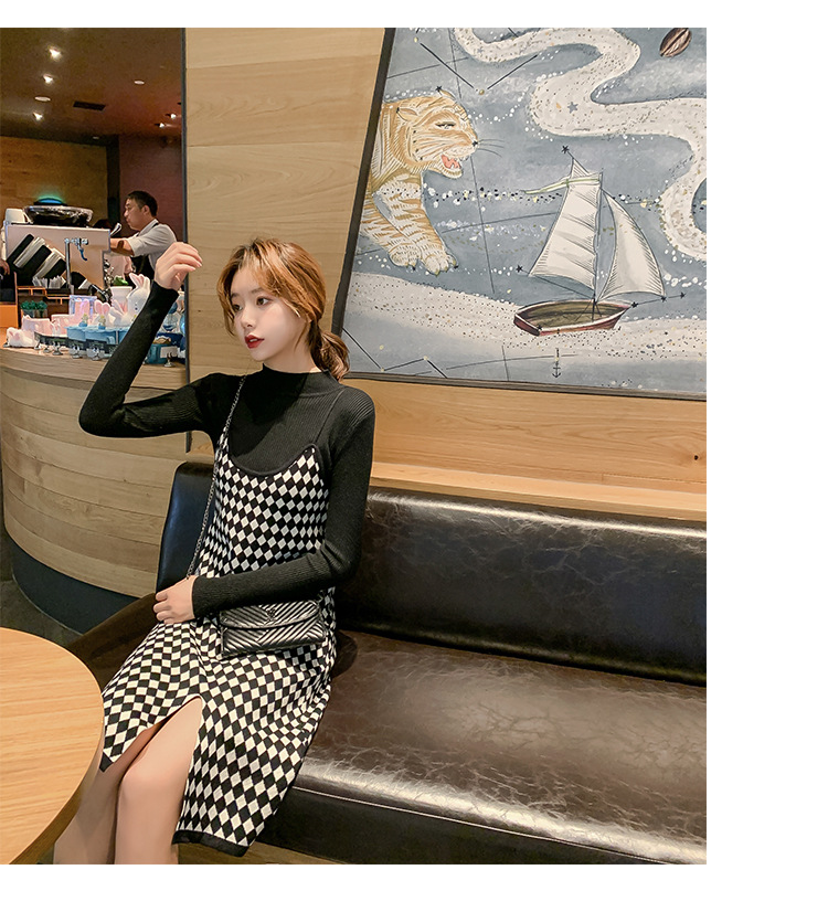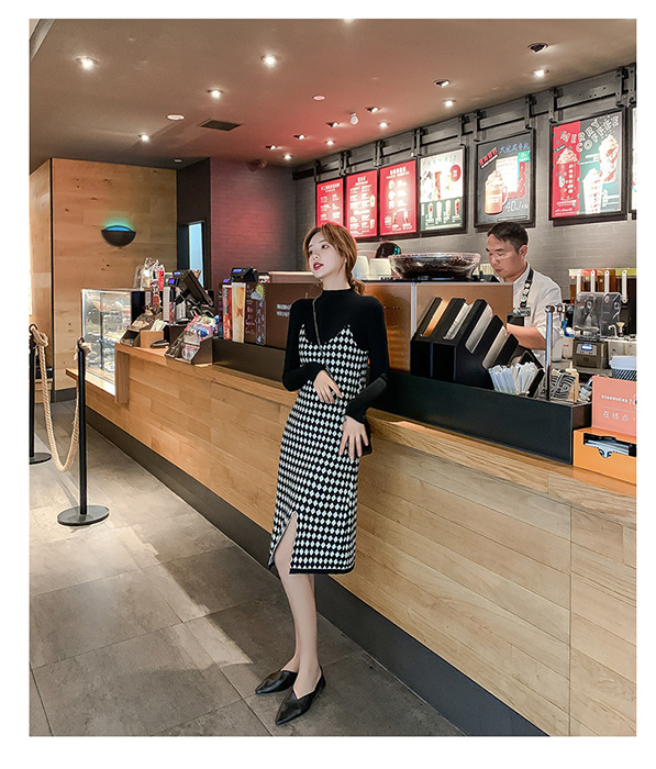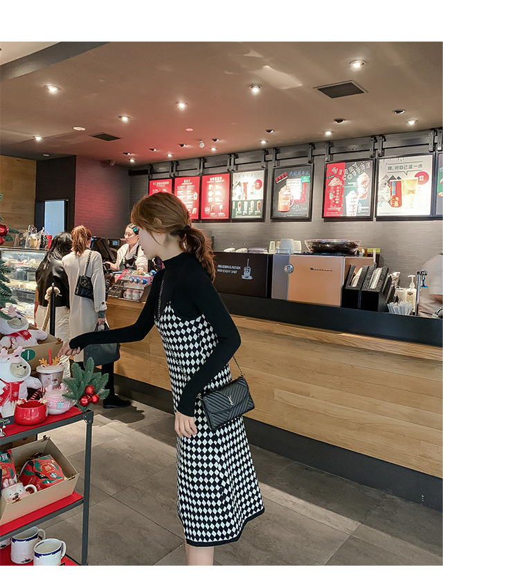 上品な千鳥格子柄が印象的なキャミワンピース。