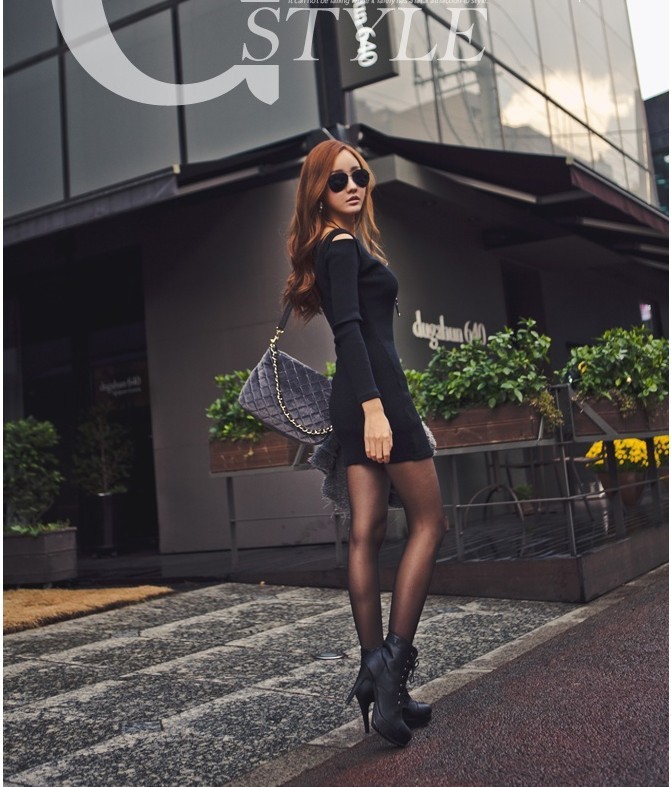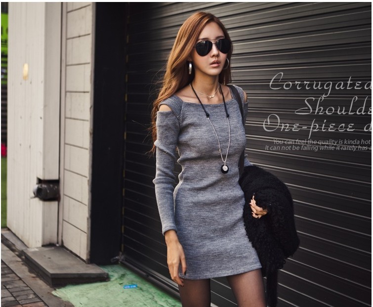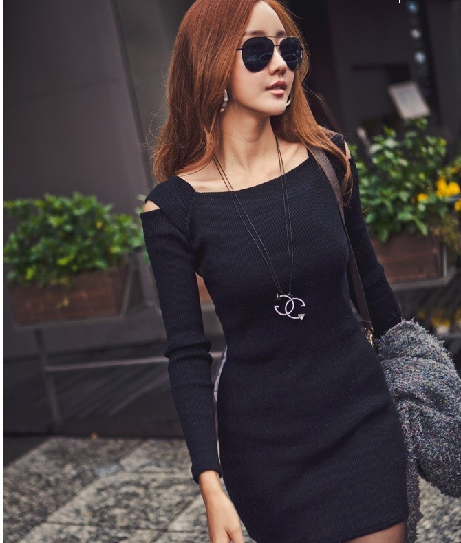 大人の女性におすすめの肩だしニットワンピースです。