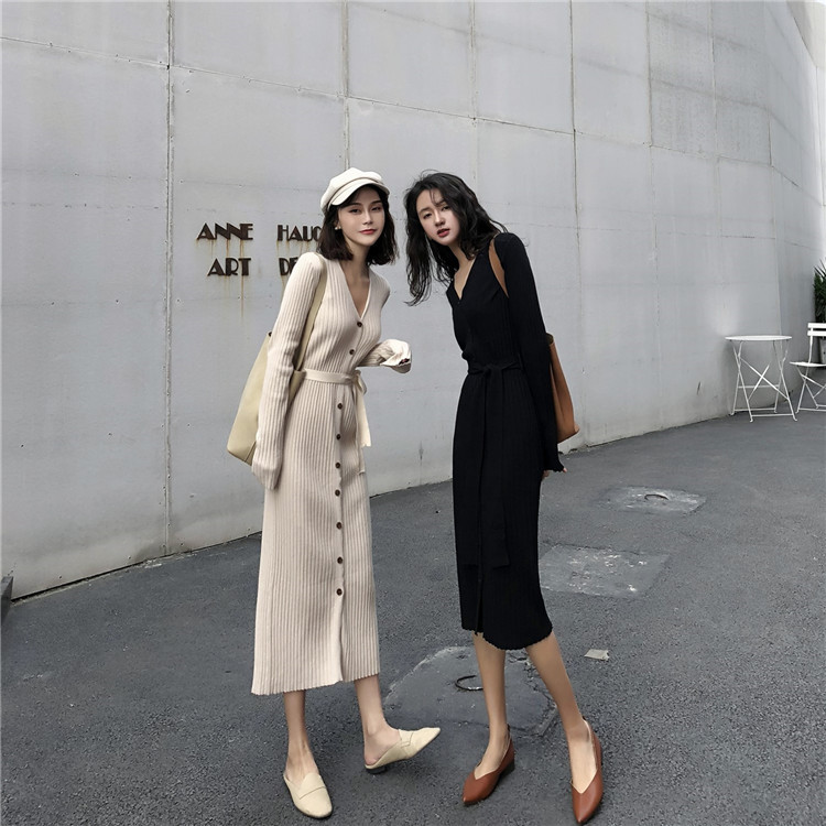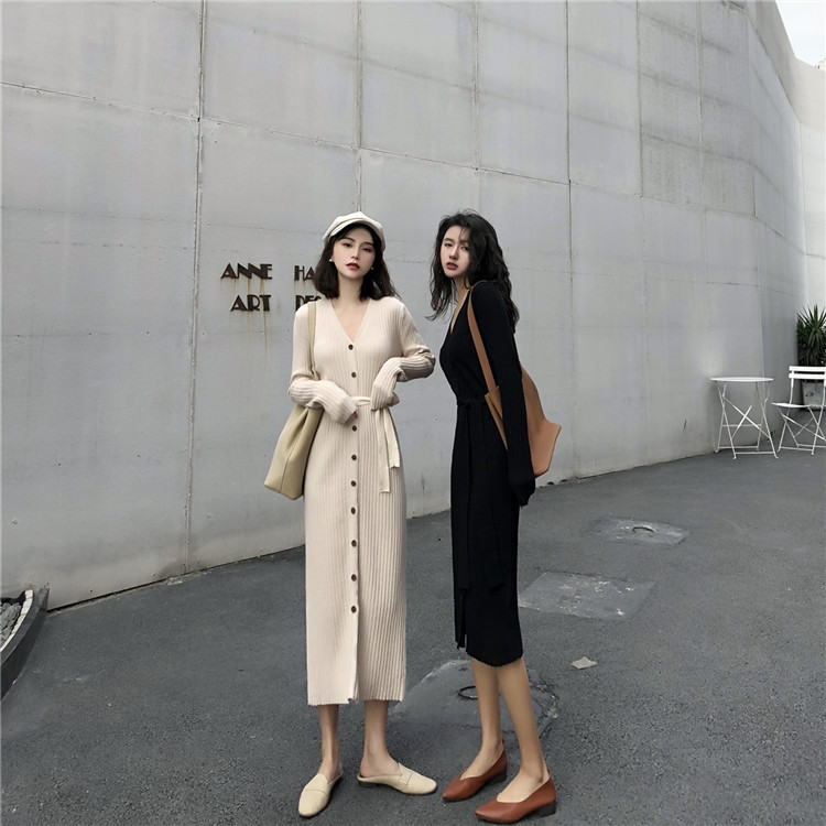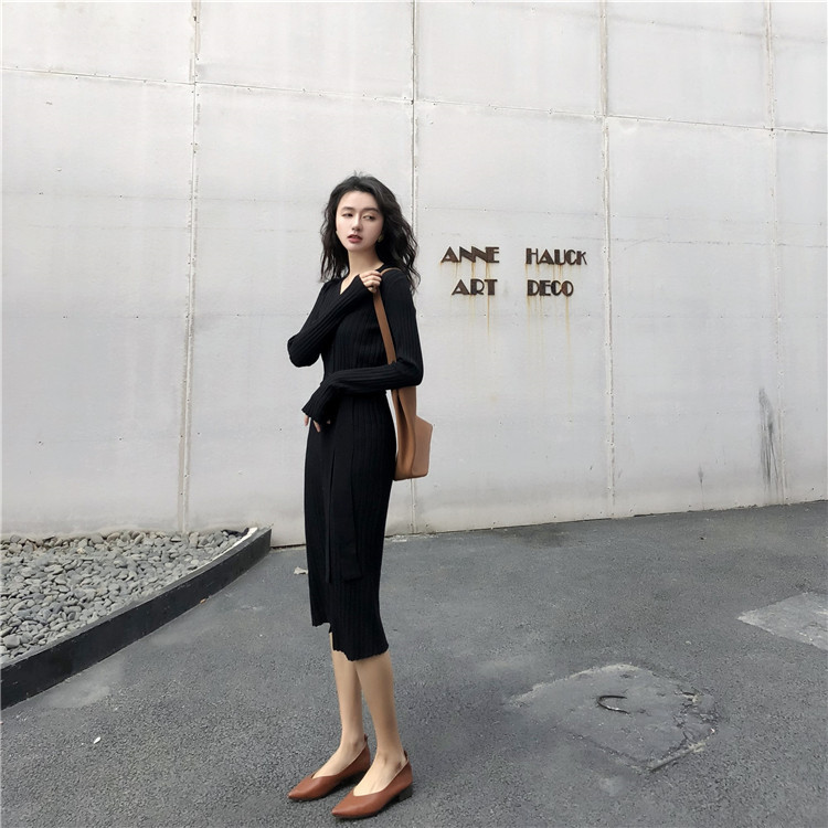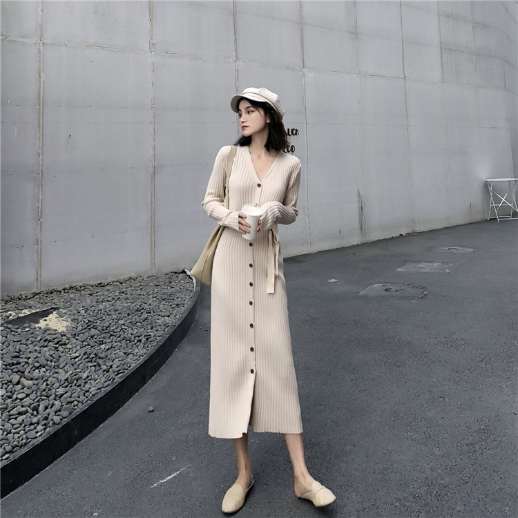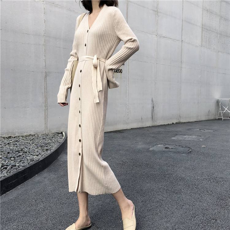 上品なリブ編みが美しいニットロングワンピースです。