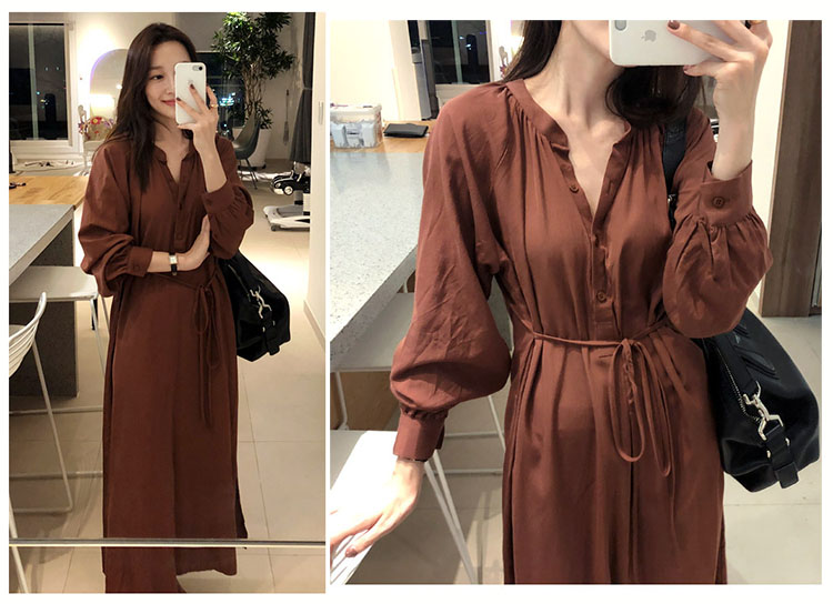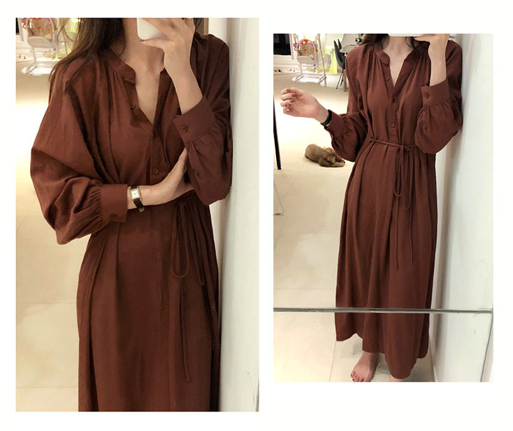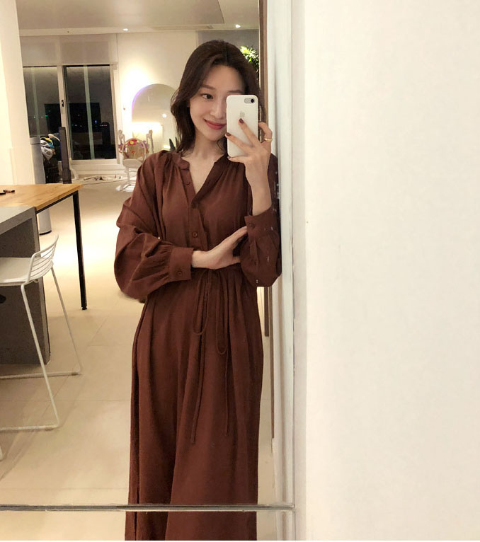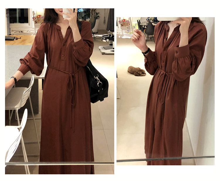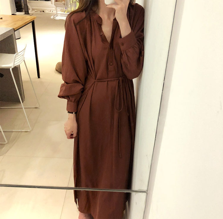 上品なロングワンピースとしても着こなせるシャツワンピース。