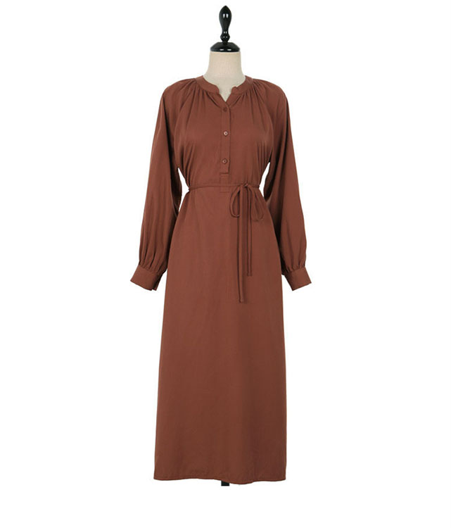 ウエストベルト付きで美しいシルエットを演出し、ゆったりとした着心地で体型カバー効果も抜群。
