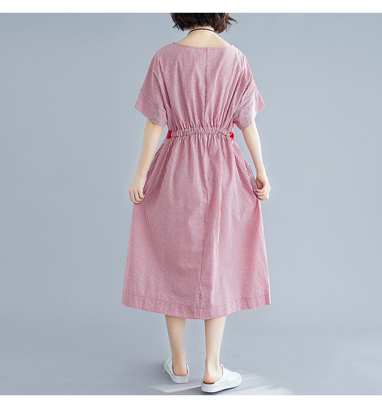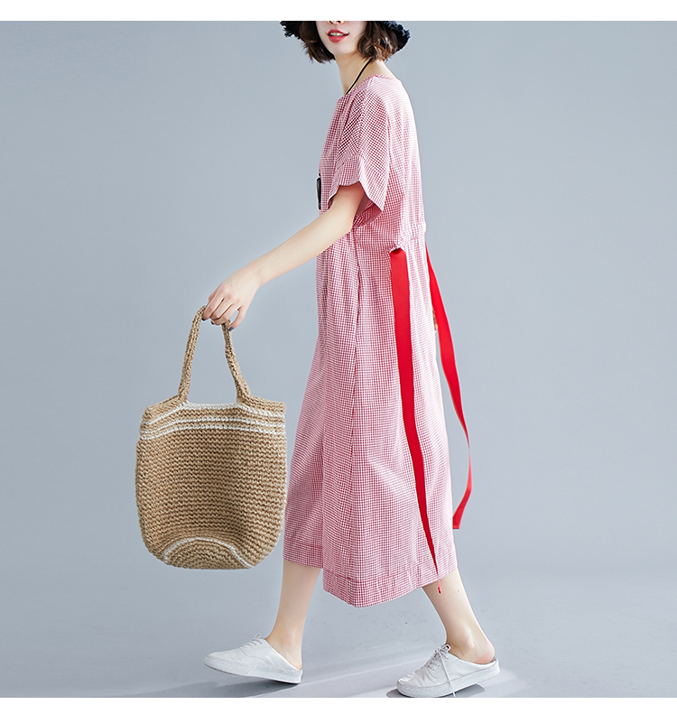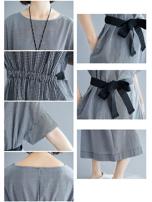 綿麻素材で肌触りが良く、ギンガムチェック柄が上品な印象を演出します。