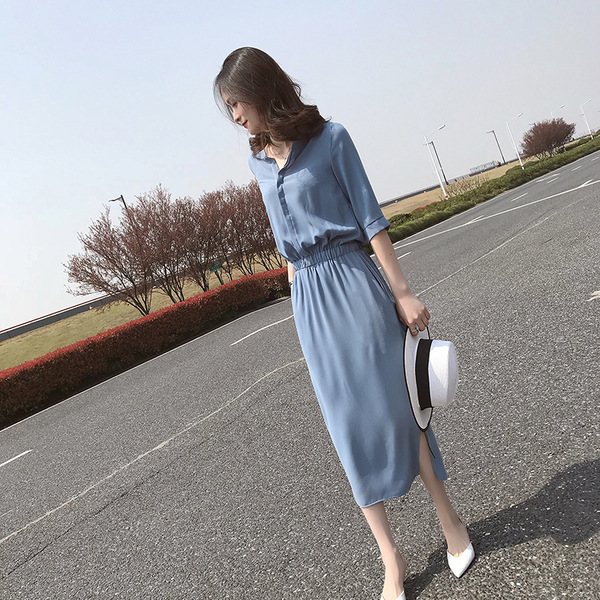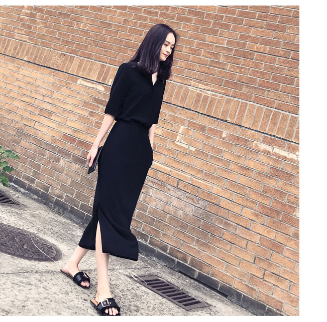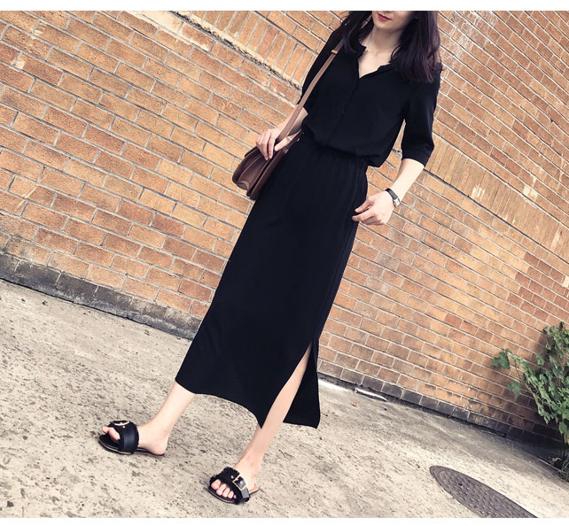 五分袖とサイドスリットで涼しげな印象を演出し、ロングワンピースとして一枚で様になる優秀アイテムです。