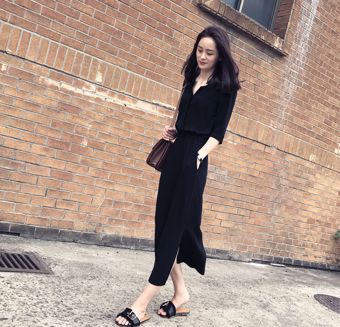 夏の大人女性におすすめの上品な黒のマキシワンピース。