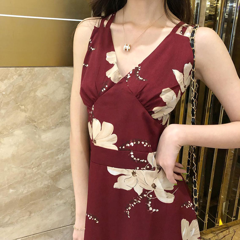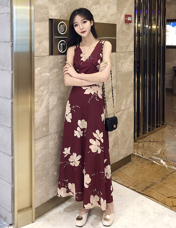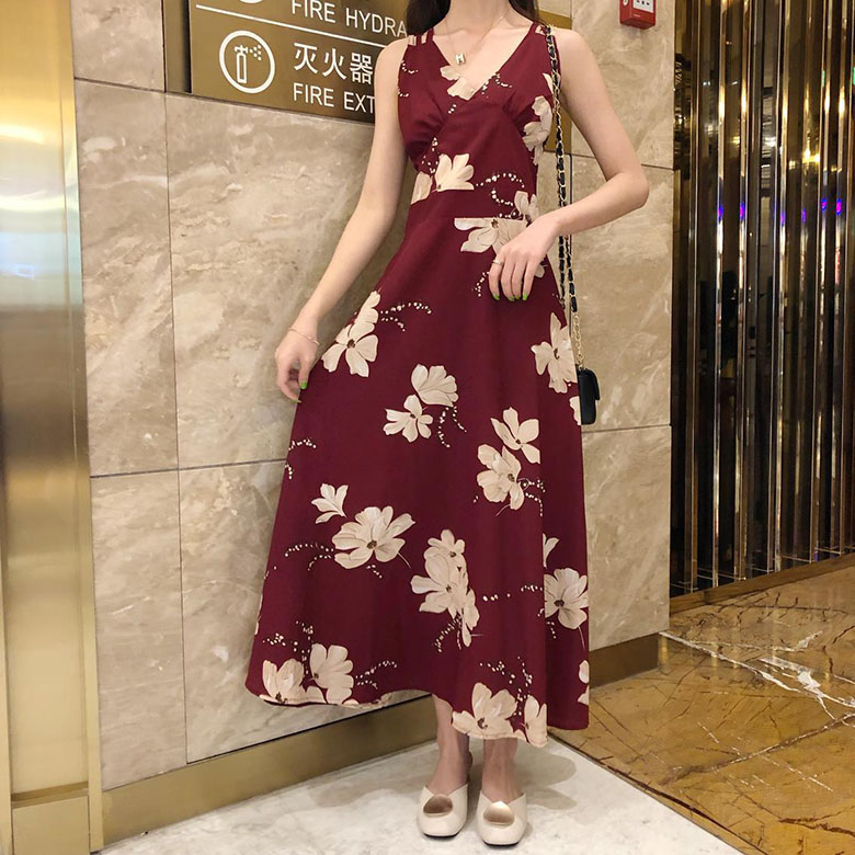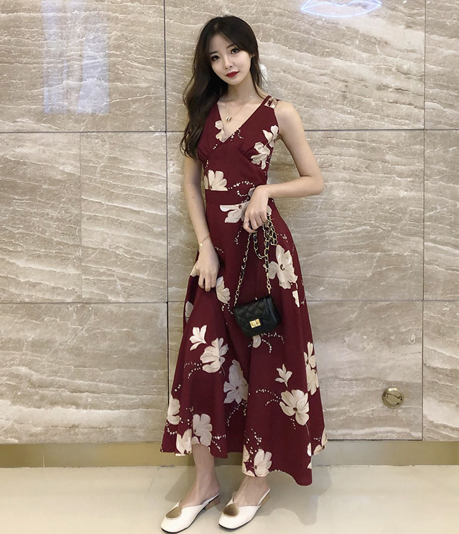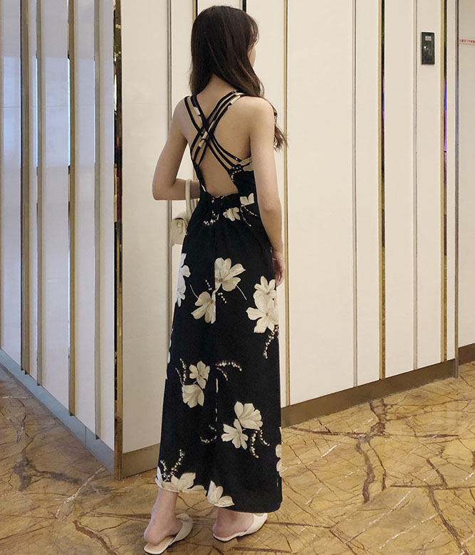 背中の交差ストラップがアクセントになった大人可愛いロングワンピースです。