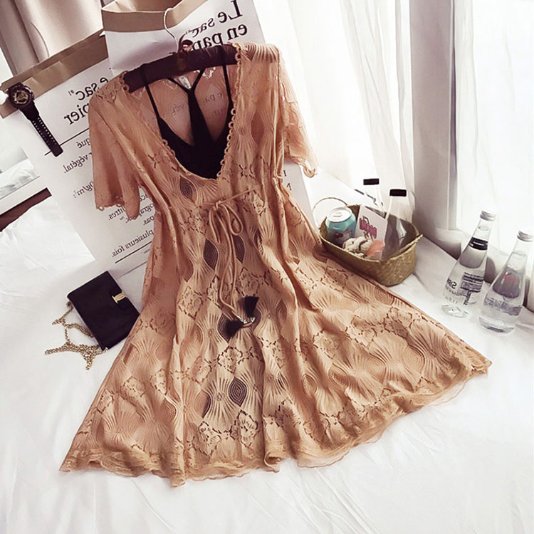 エレガントな総レース仕様のキャミワンピース二点組です。