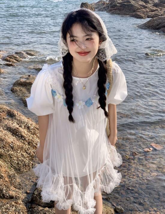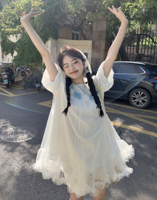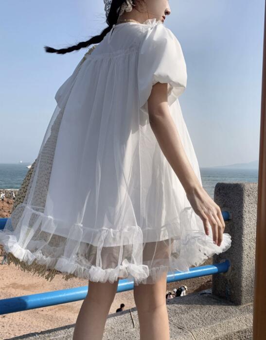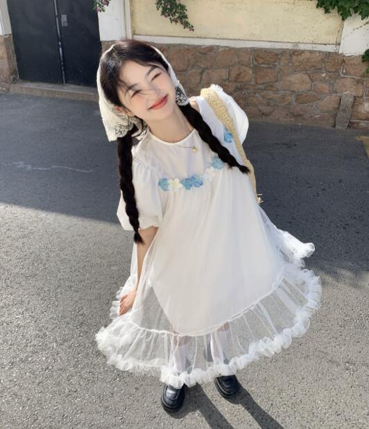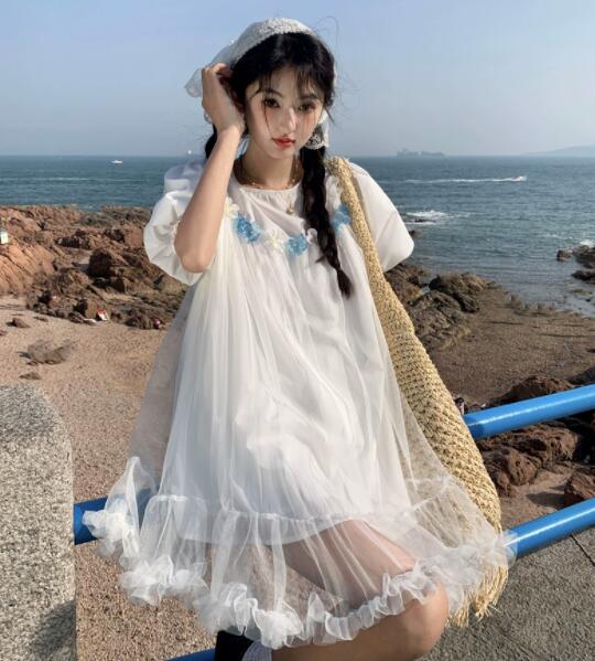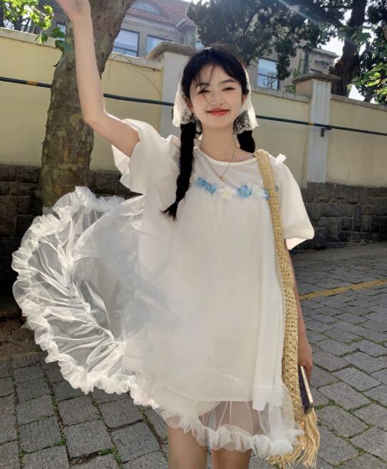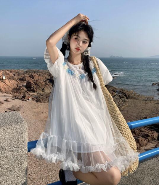 胸元の花刺繍と裾の多層レースフリルが上品な印象を演出します。