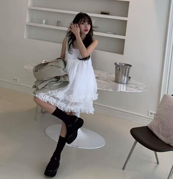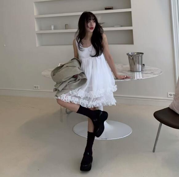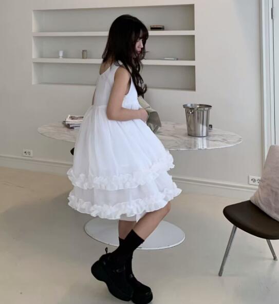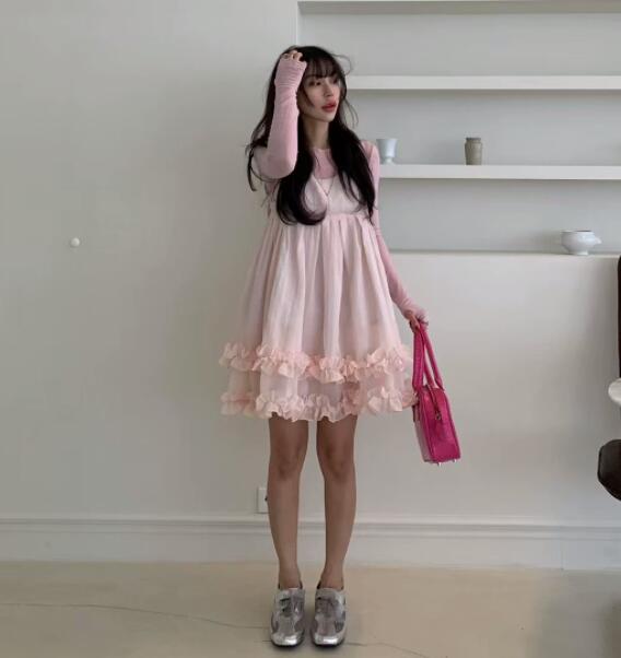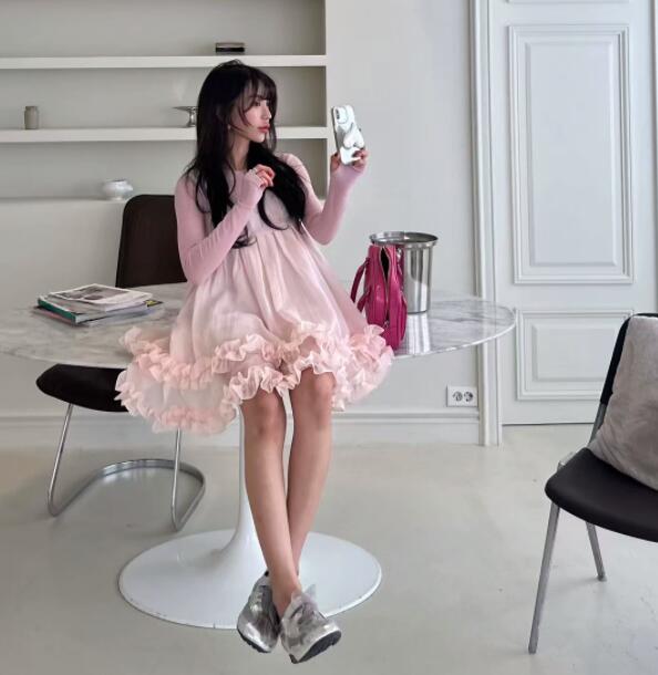 裾部分の豪華なフリル装飾が女性らしさを演出し、特別な日のお出かけにも最適です。