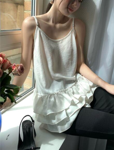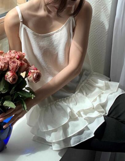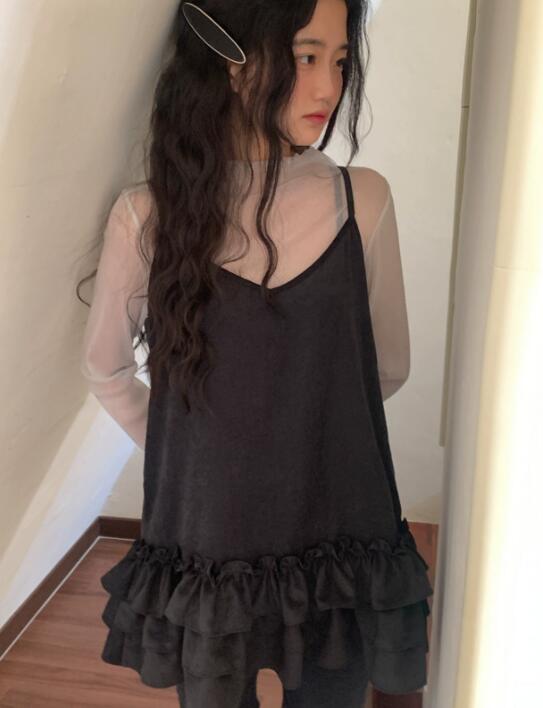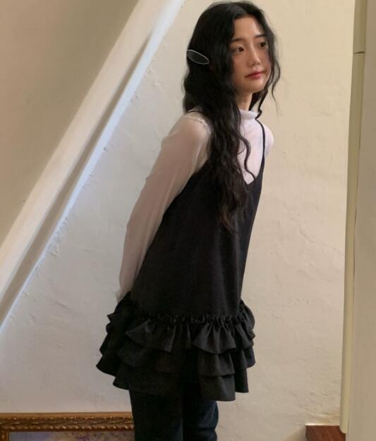 裾部分の重なりフリルがエレガントな印象を演出します。