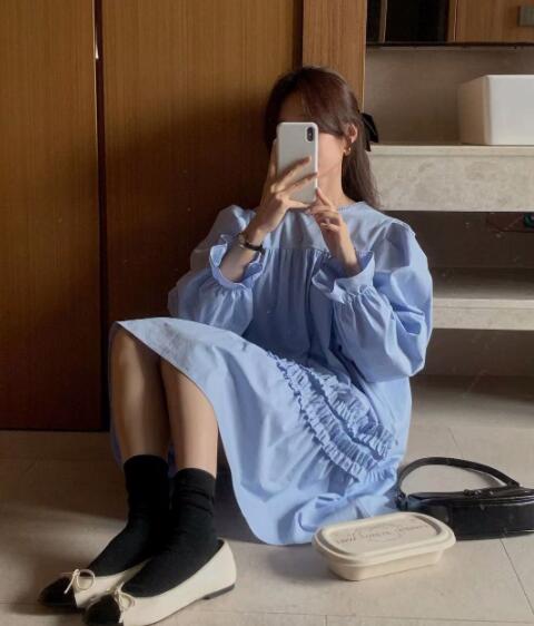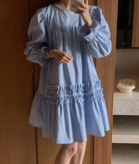 上品なフリルデザインが魅力的な長袖チュニックワンピースです。