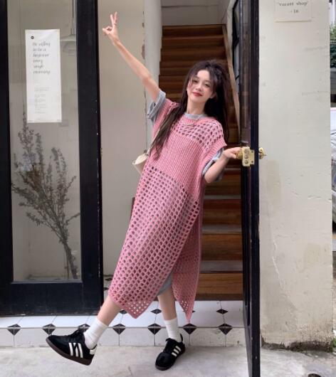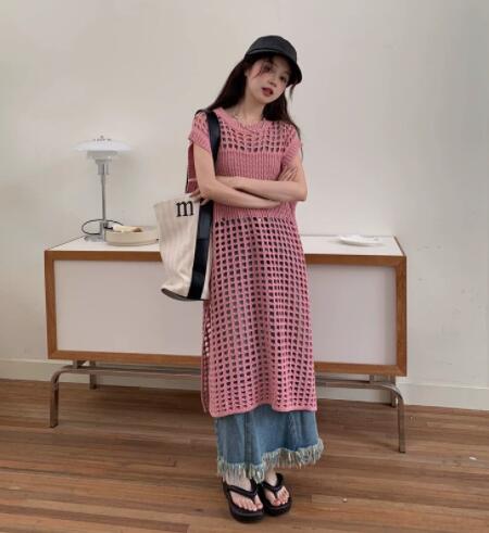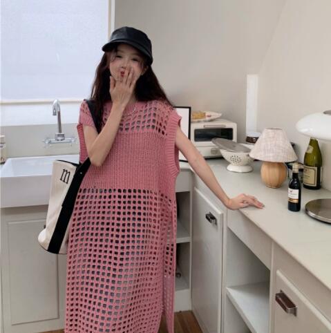 袖なしデザインで重ね着に最適、ロングワンピースとしても着用できます。