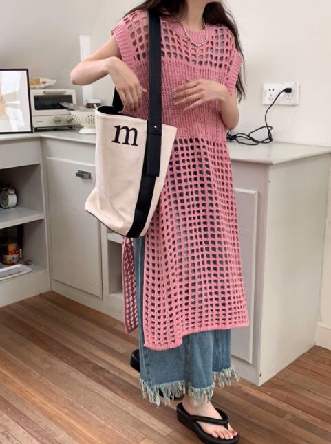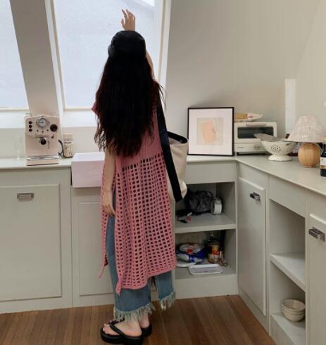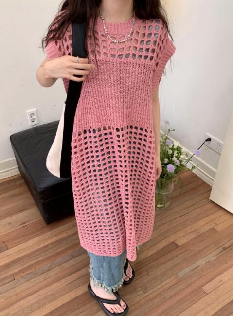 透かし編みが美しいニットベストです。