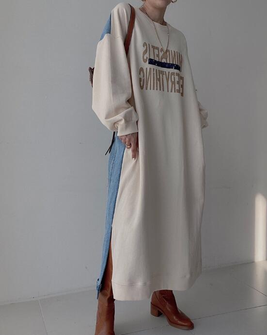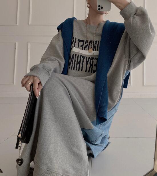 カジュアルで着回し力抜群のスウェット素材ロングワンピース。