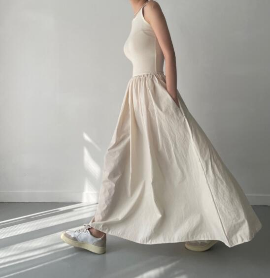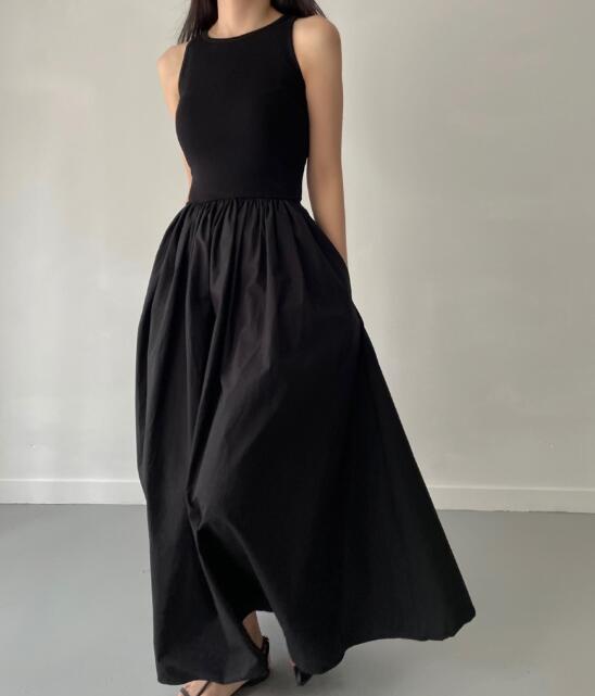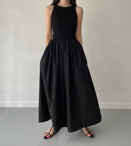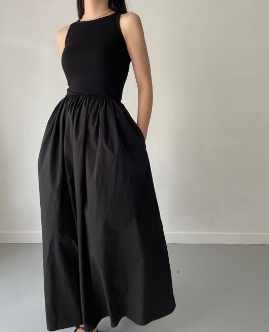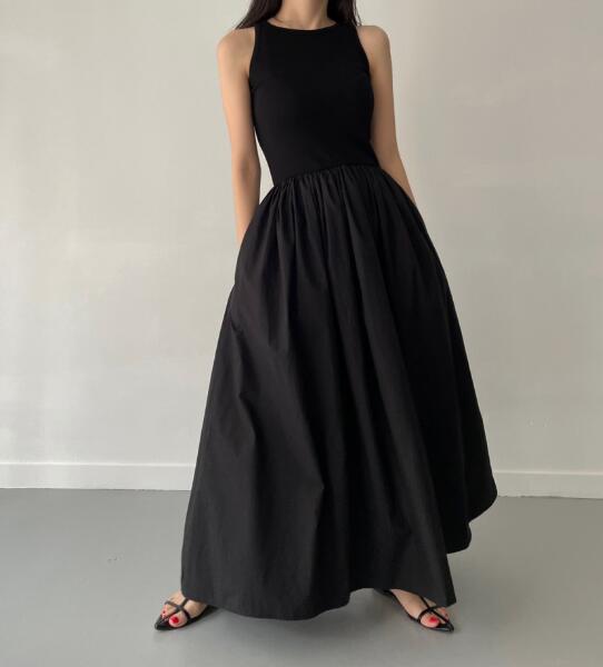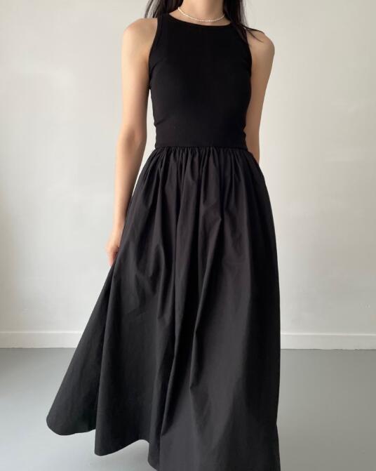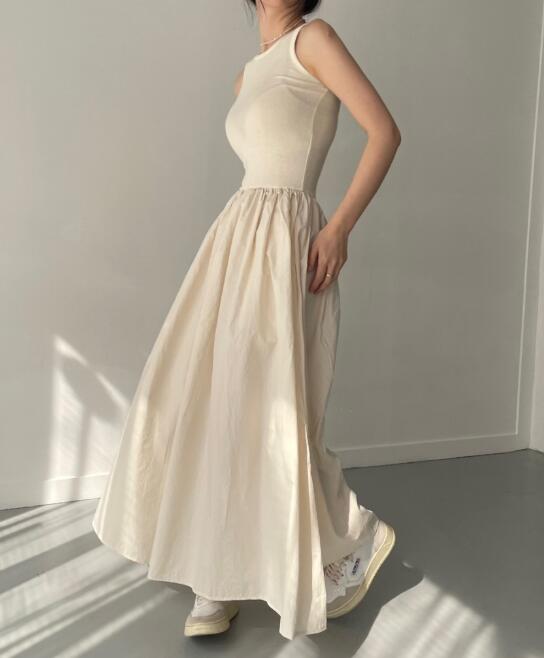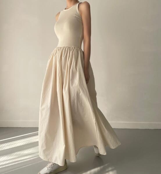 袖なしデザインで涼しく着こなせる夏にぴったりの一着。