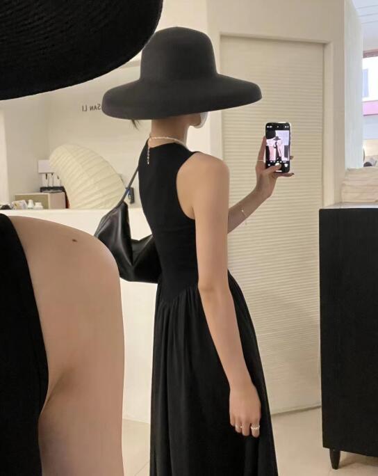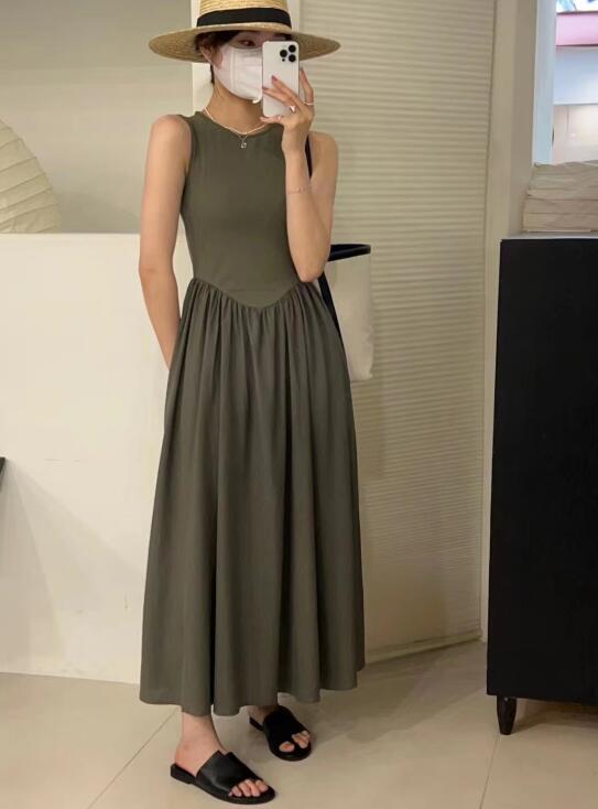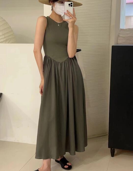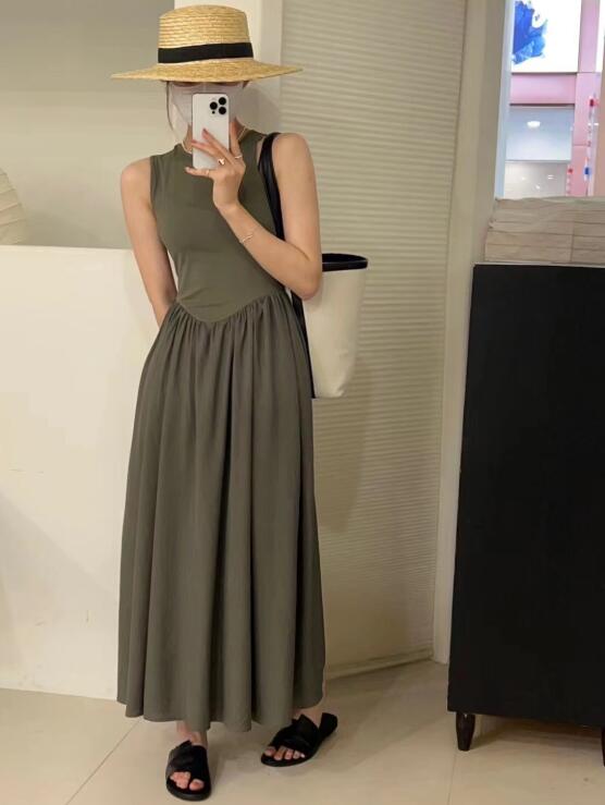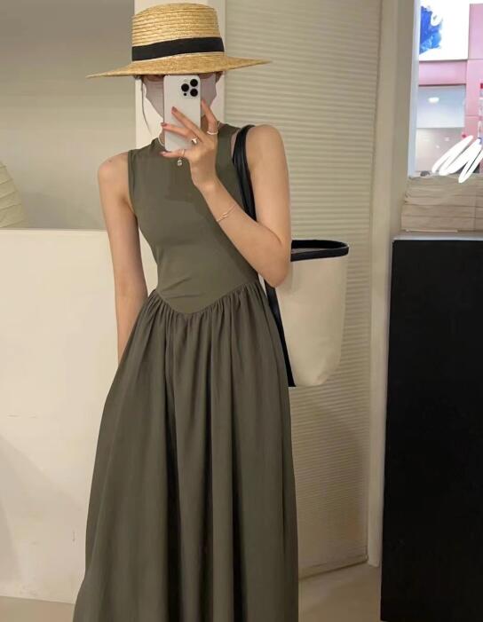 エレガントな女性らしさを演出するノースリーブのロングワンピースです。