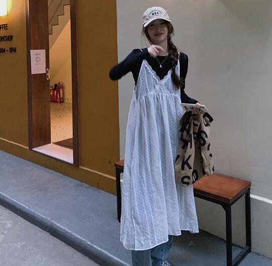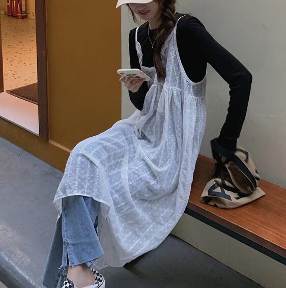 涼しげな夏にぴったりのレース素材を使用したキャミソール型ロングワンピース。