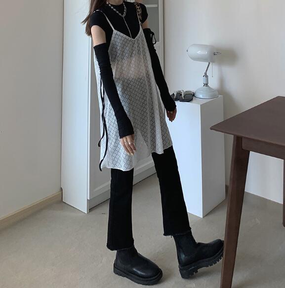 暑い夏にぴったりの涼しげなメッシュ素材のキャミワンピースです。