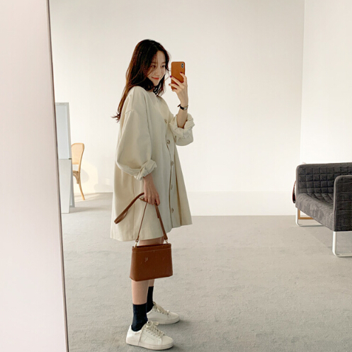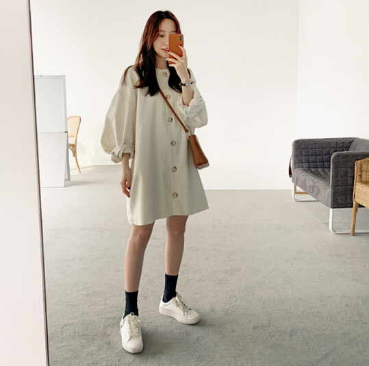 大人可愛いシャツ風のロングワンピースです。