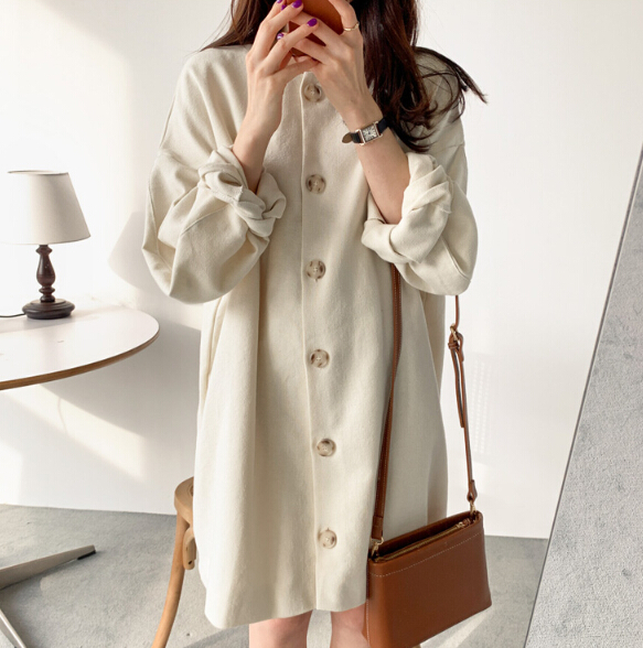 前ボタンがアクセントになり、一枚で上品なコーディネートが完成します。