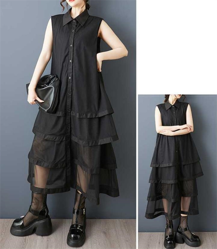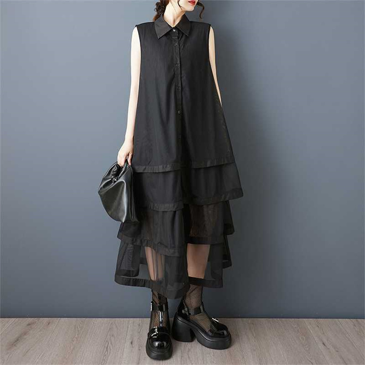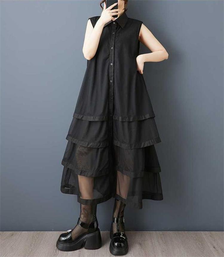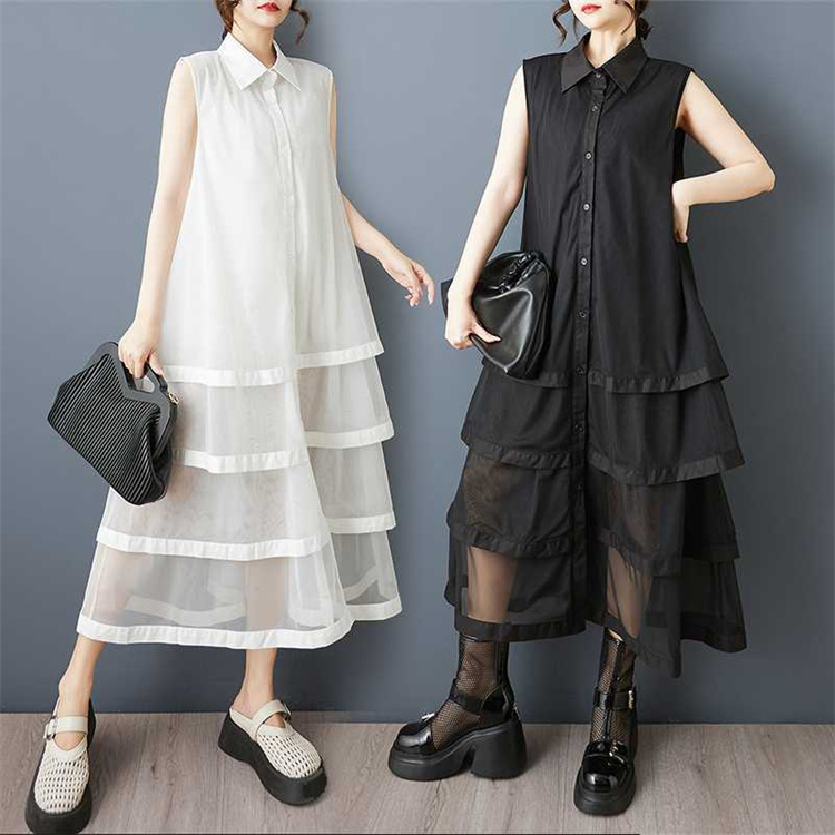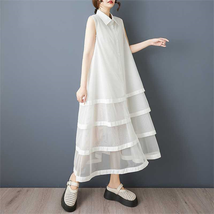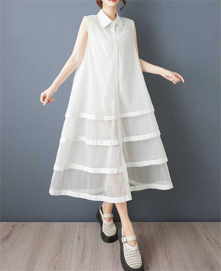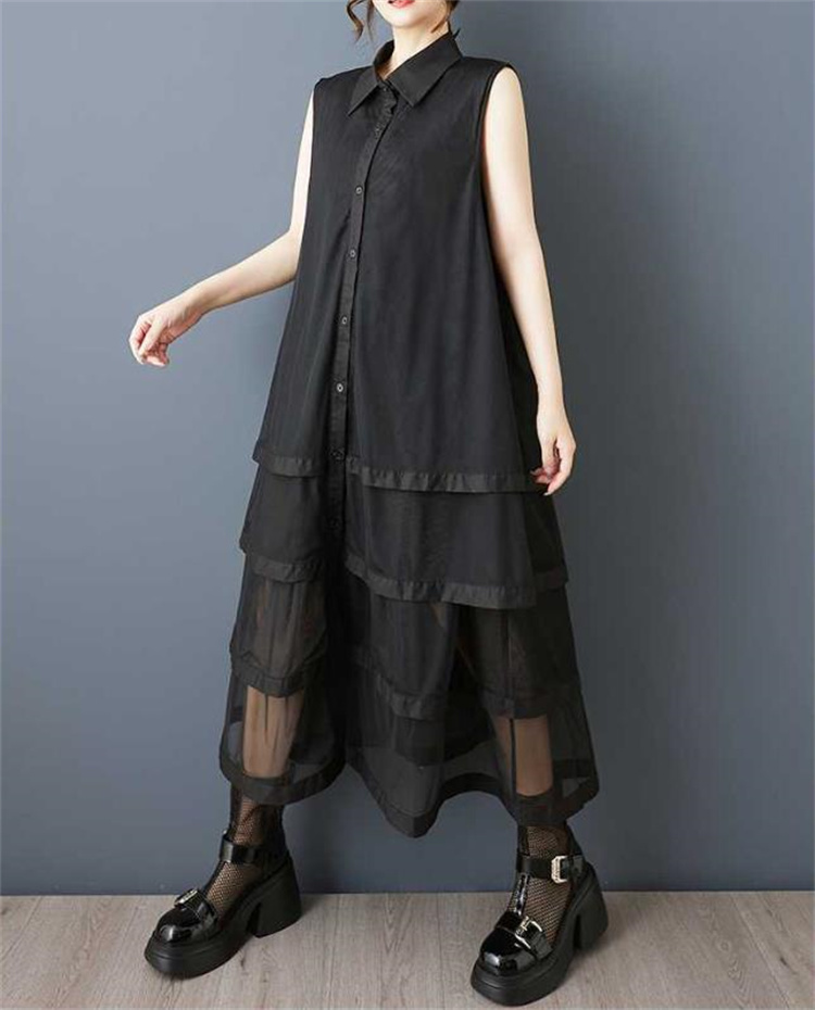 夏にぴったりのゆったり仕立てノースリーブロングワンピース。