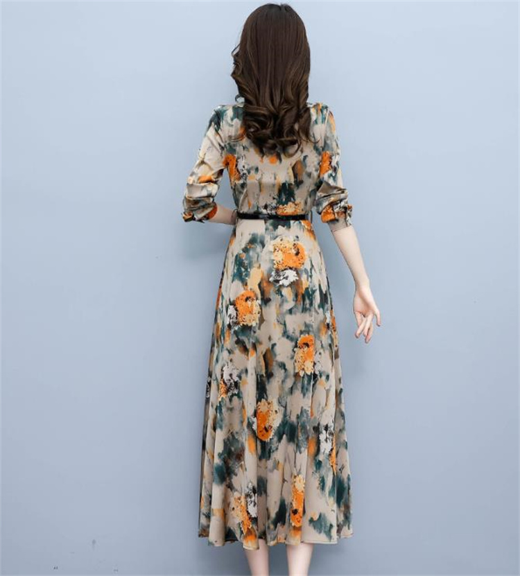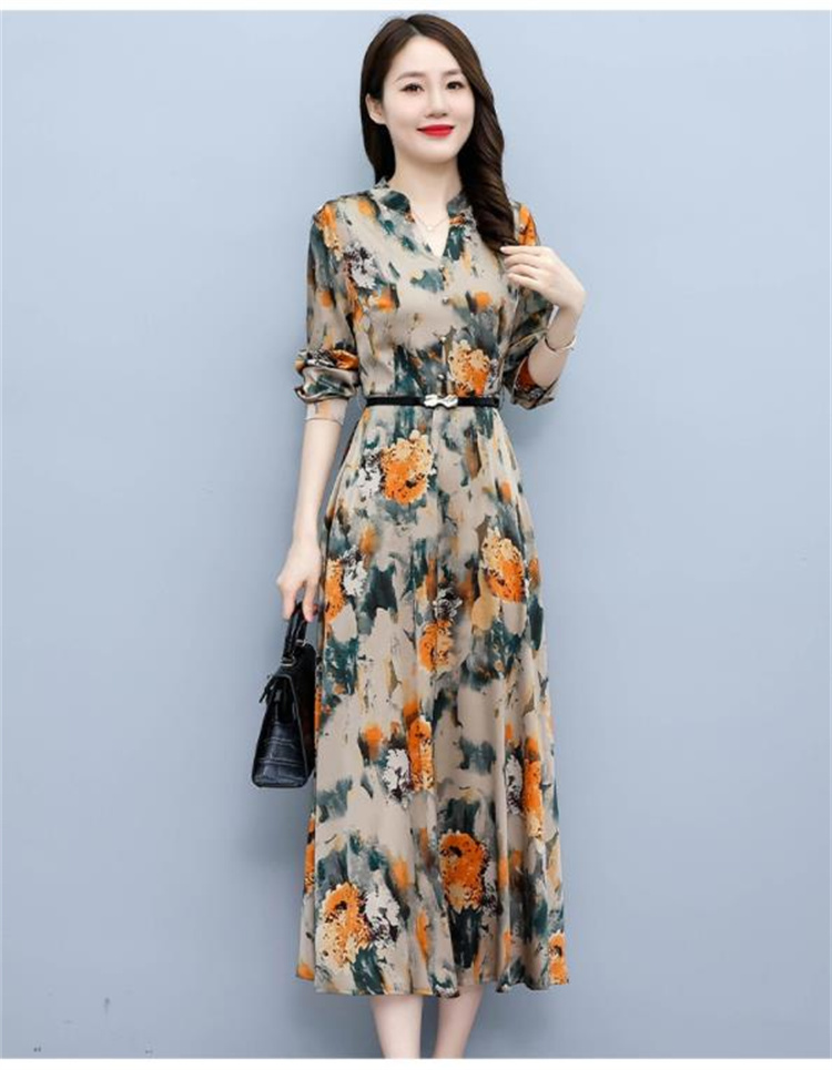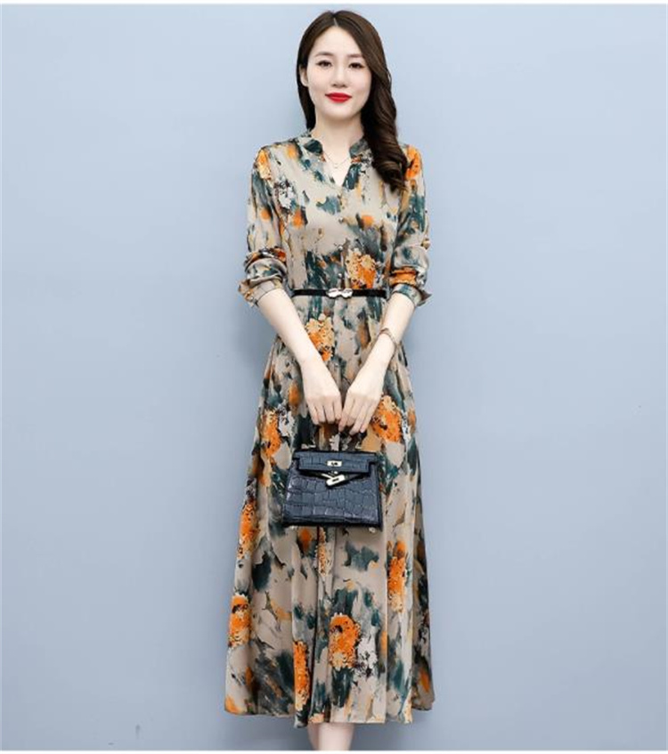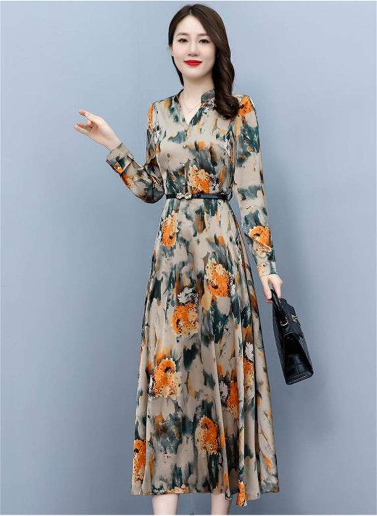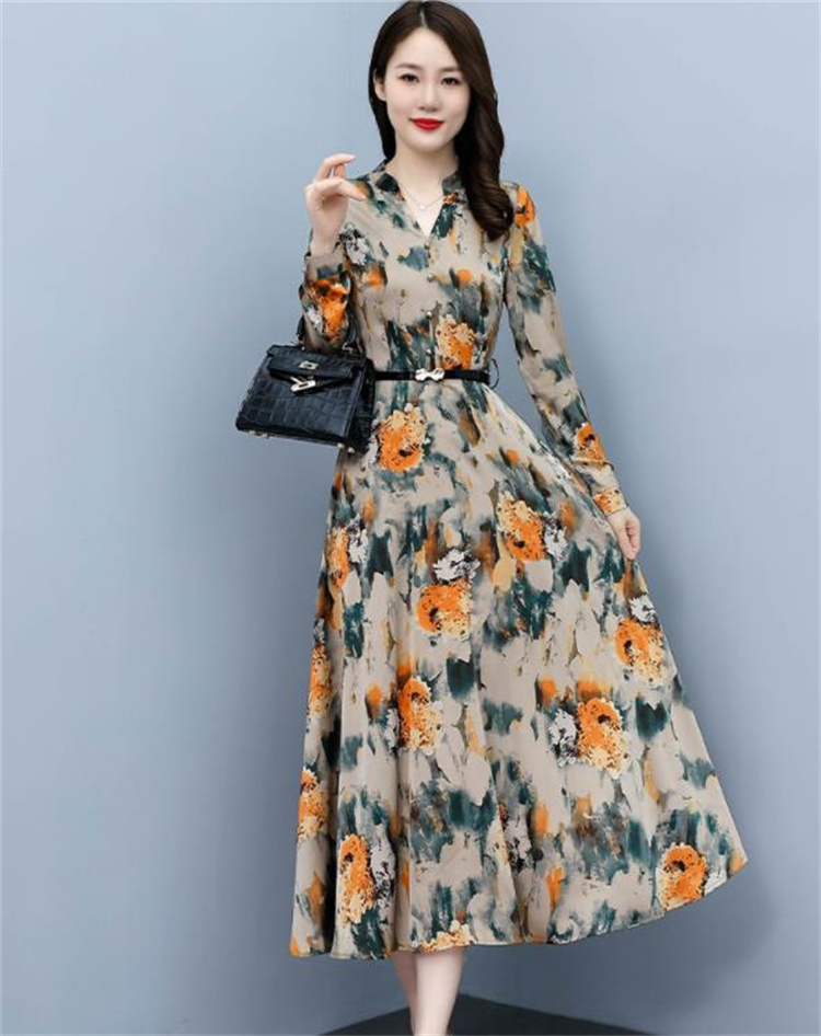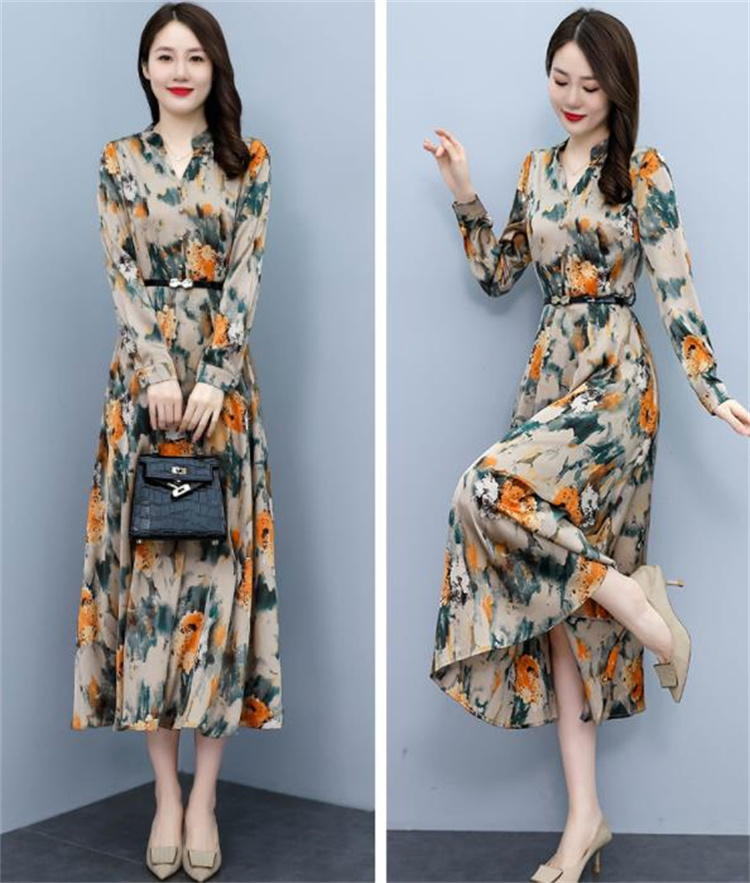 華やかな花柄プリントが魅力的な長袖ロングワンピースです。