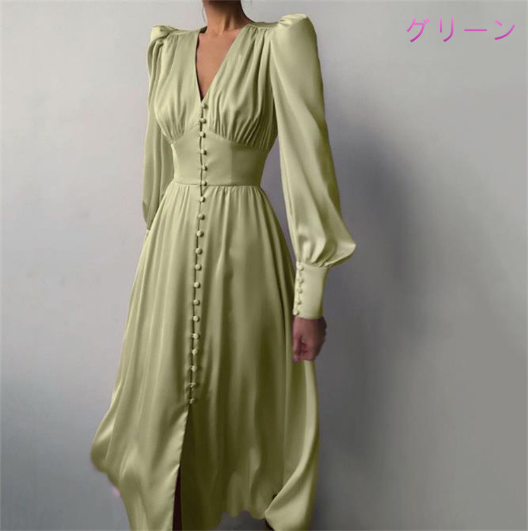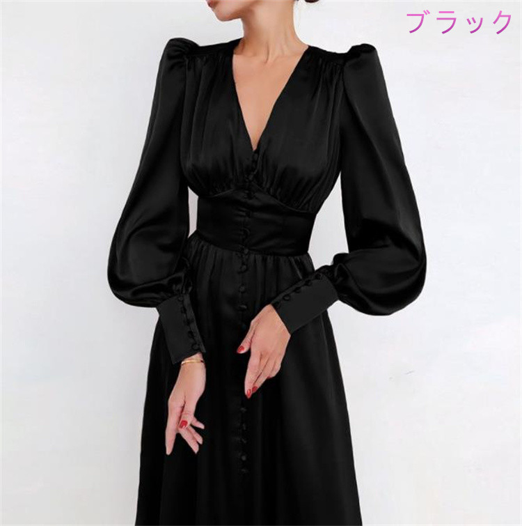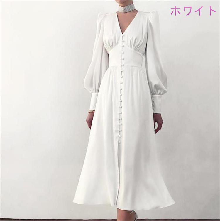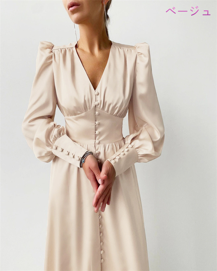 エレガントなフレア袖が魅力的なロングワンピースです。