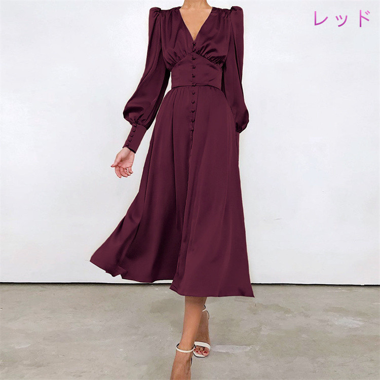 ウエストマークですっきりとしたシルエットを演出し、上品な無地デザインで様々なシーンに対応できます。