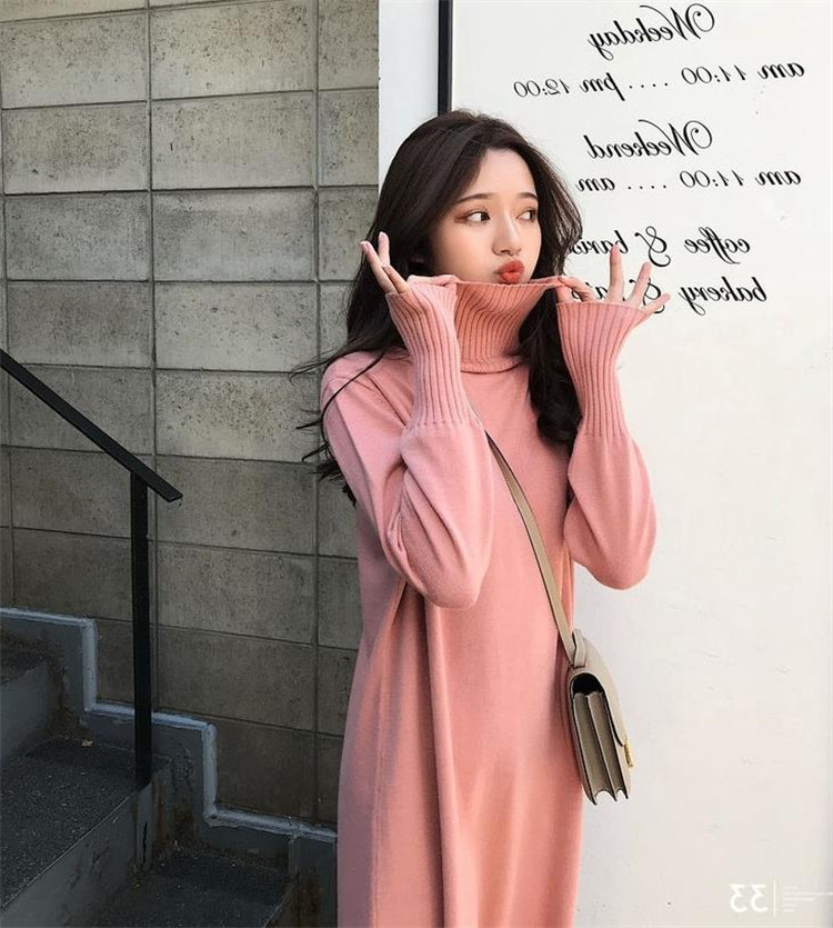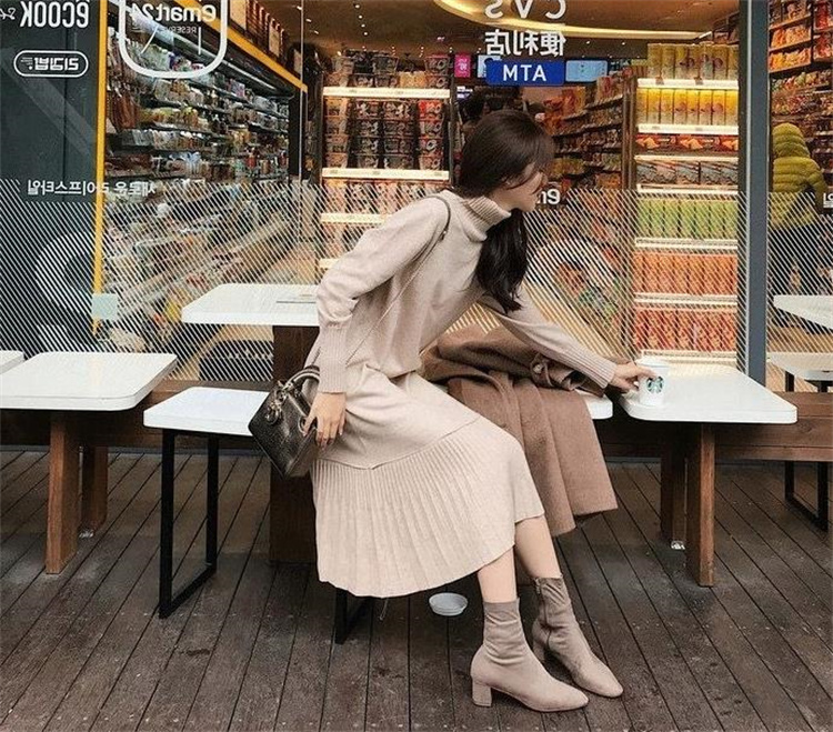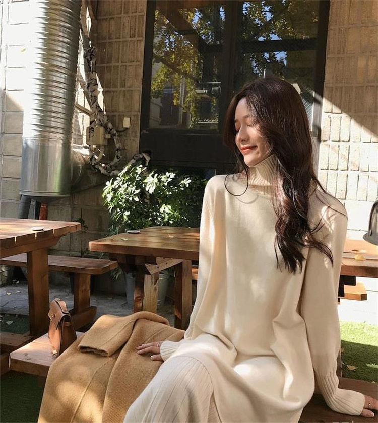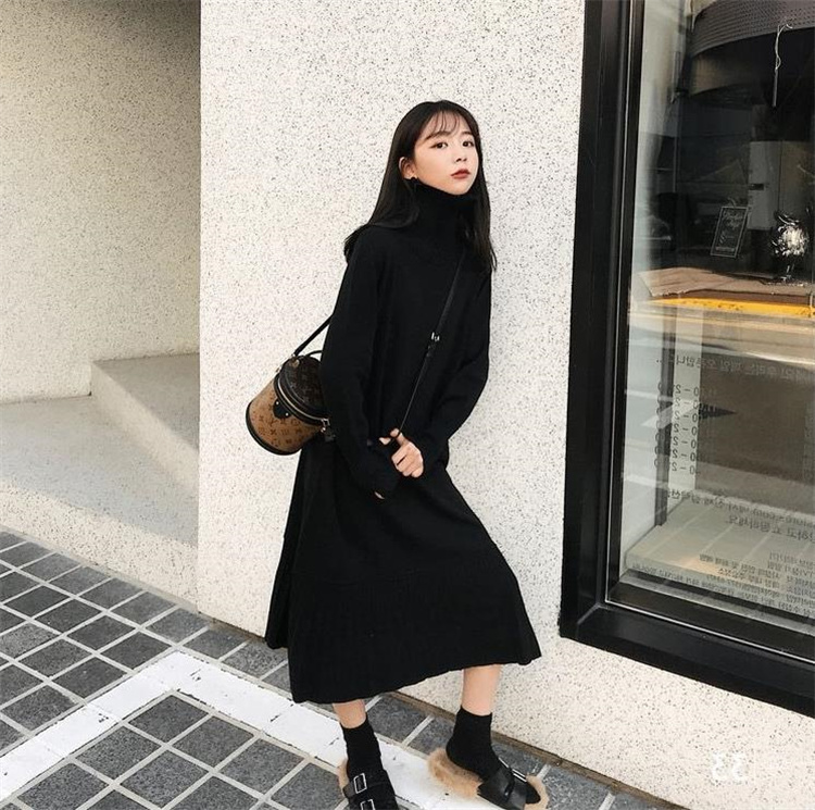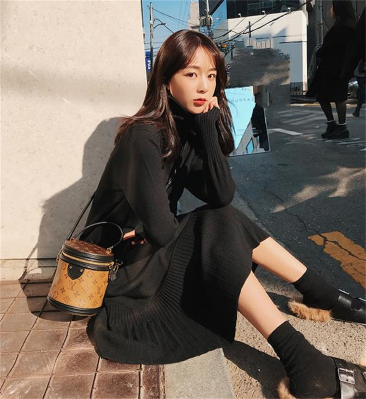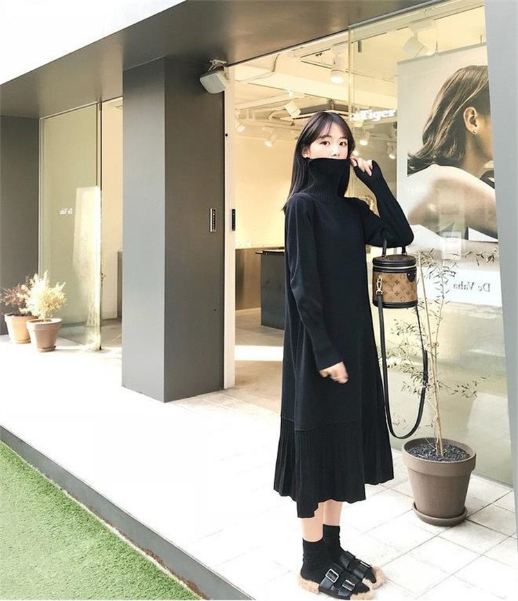 エレガントなデザインが魅力的なニットセータードレス。