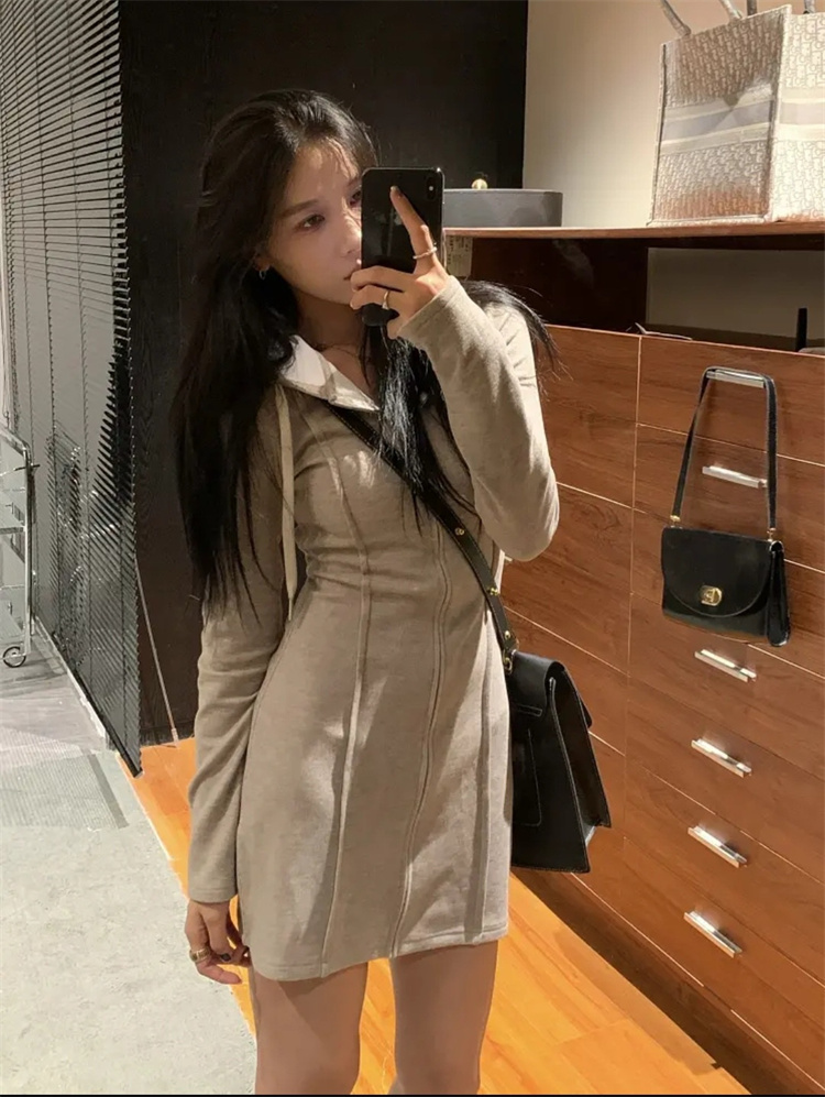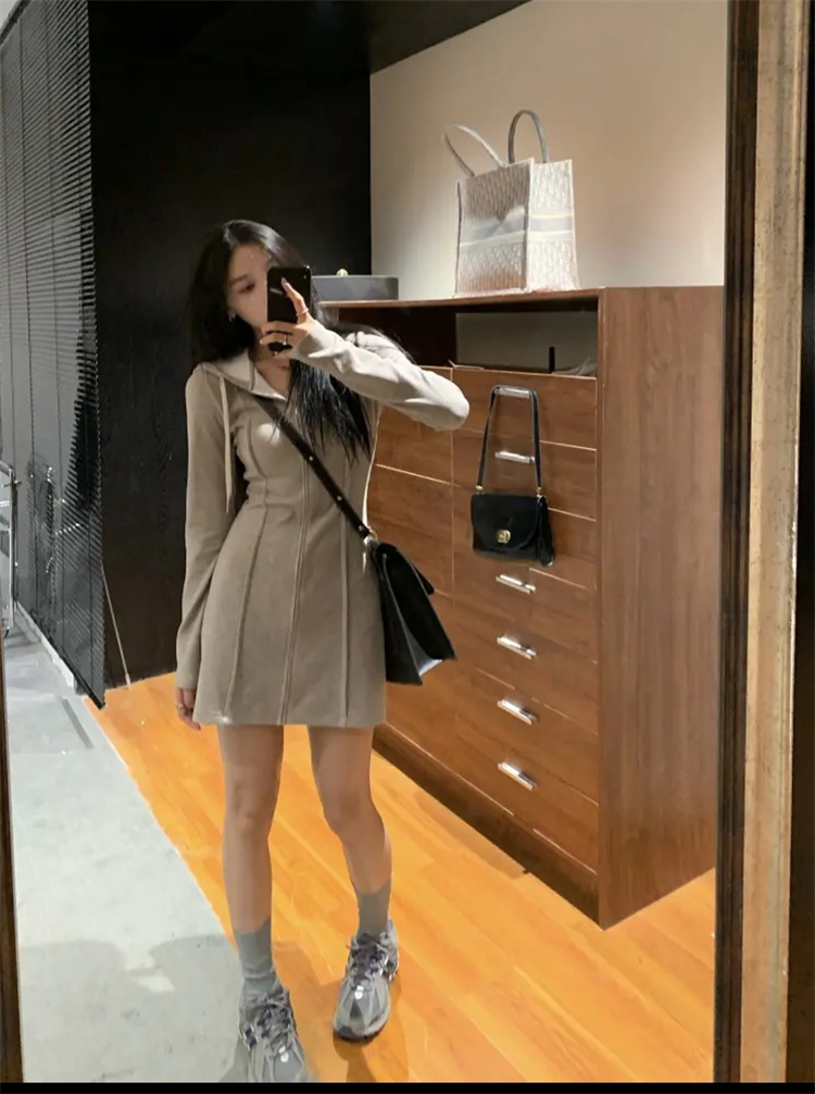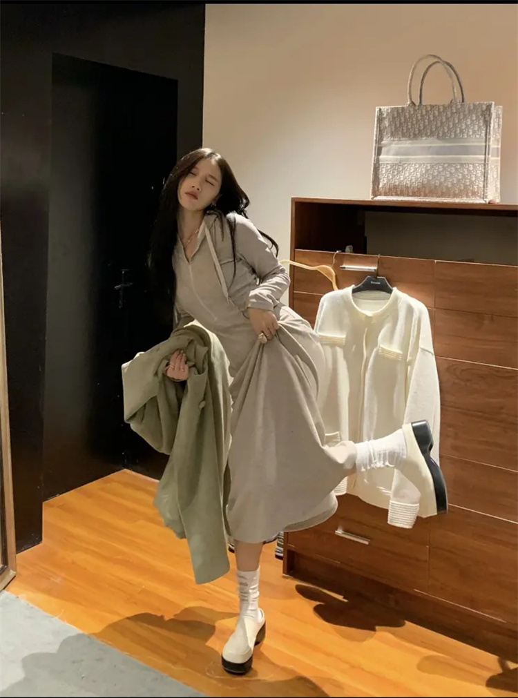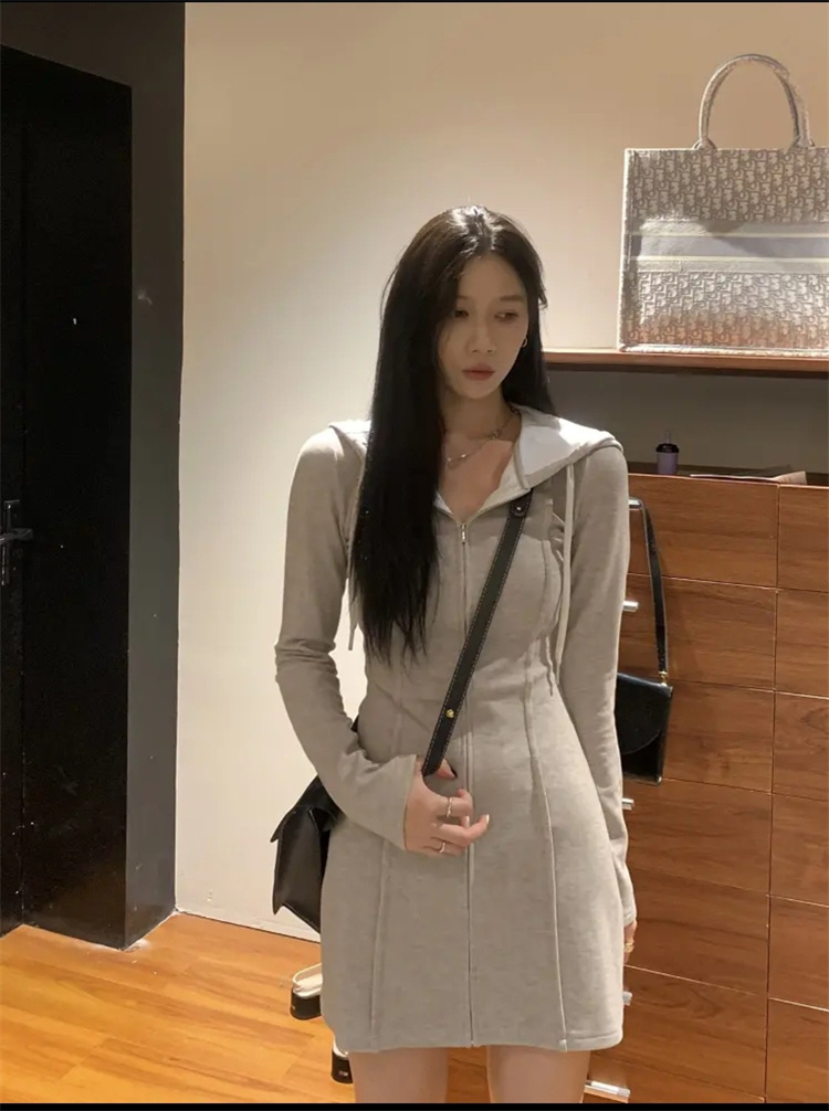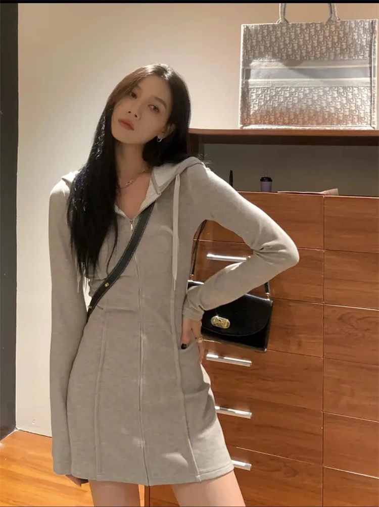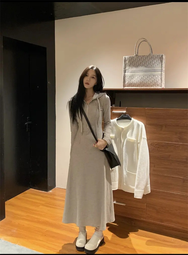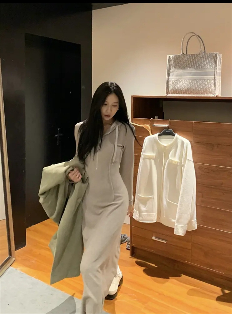 上品な印象を演出するフード付きニットワンピースです。