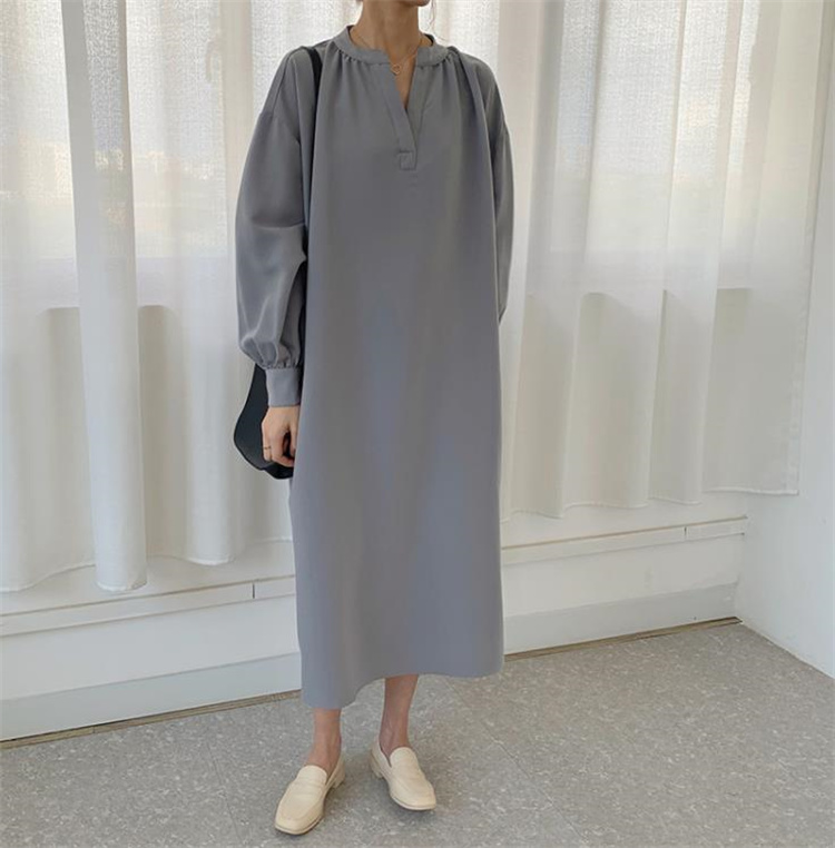 秋のトレンドを取り入れたエレガントなロングワンピース。