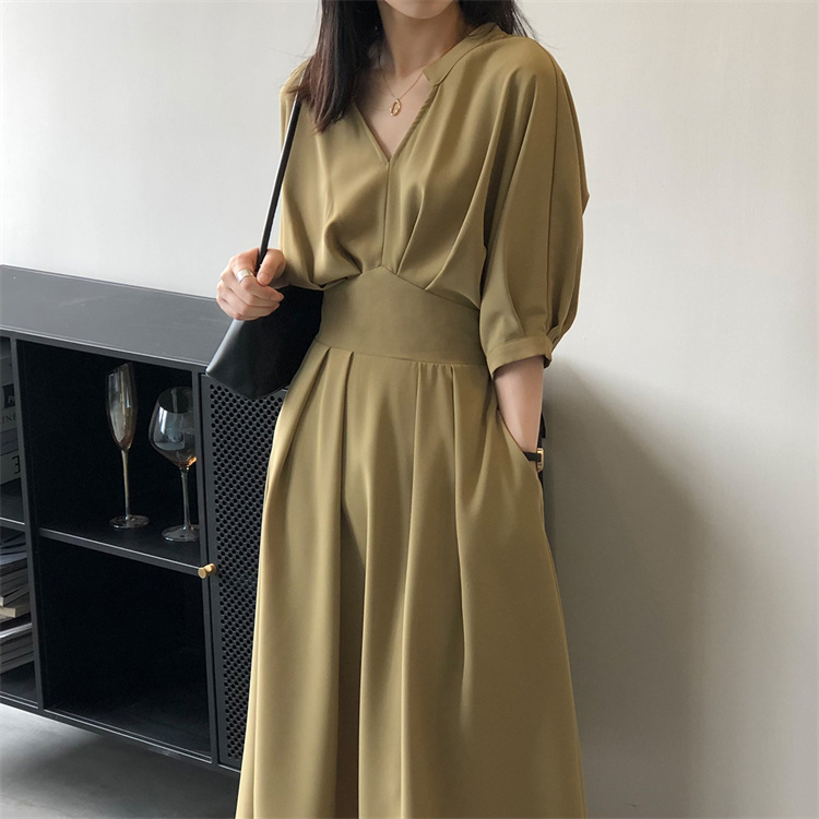 上品なウエストマーク仕様でスタイルアップ効果抜群のロングワンピースです。